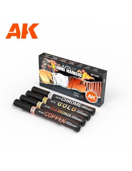 Questo set contiene quattro pennarelli a punta fine con vernice metallizzata permanente per dipingere i dettagli sulle tue miniature in modo molto comodo e intuitivo. La punta consente la massima precisione su tutti i tipi di pezzi e figure, in particolare le figure da gioco.