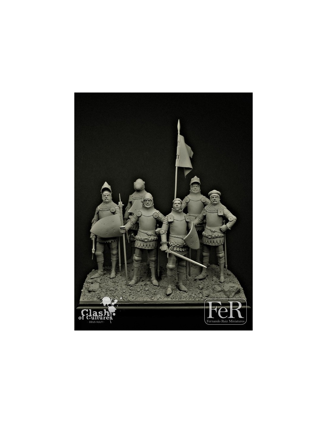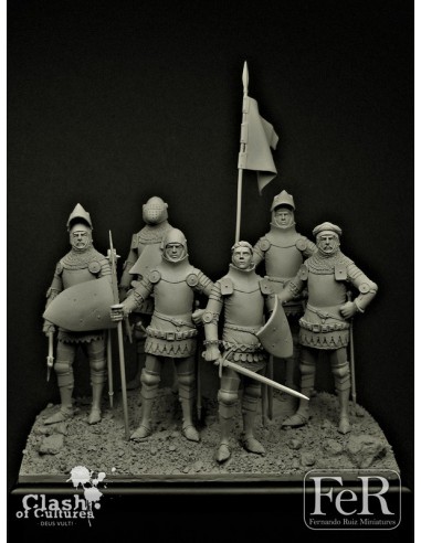 Inspired by this epic moment, we are proud to present this extremely detailed multi-pose kit that allows you to build two complete English knights with a myriad of accessories that allows virtually hundreds of different combinations. Also, adding slight modifications to it or just changing the color scheme, it can be used to portray other knightly subjects from the early XV century. You can use a kit to build a small vignette or two independent subjects or combine a few of them as the basis for an ambitious diorama. The sky is the limit.