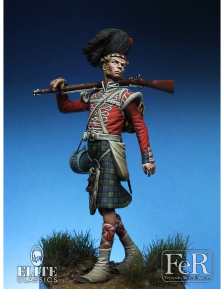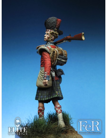 Our miniature is a classic made by Raúl García Latorre for Elite miniatures and depicts a soldier from that regiment in marching order.