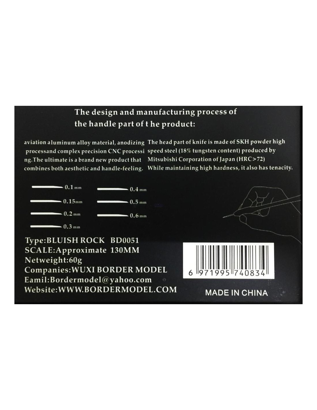 set Incisore con manico in alluminio+ 7 lame (mm.0,1 - 0,15 - 0,2 - 0,3 - 0,4 - 0,5 - 0,6)