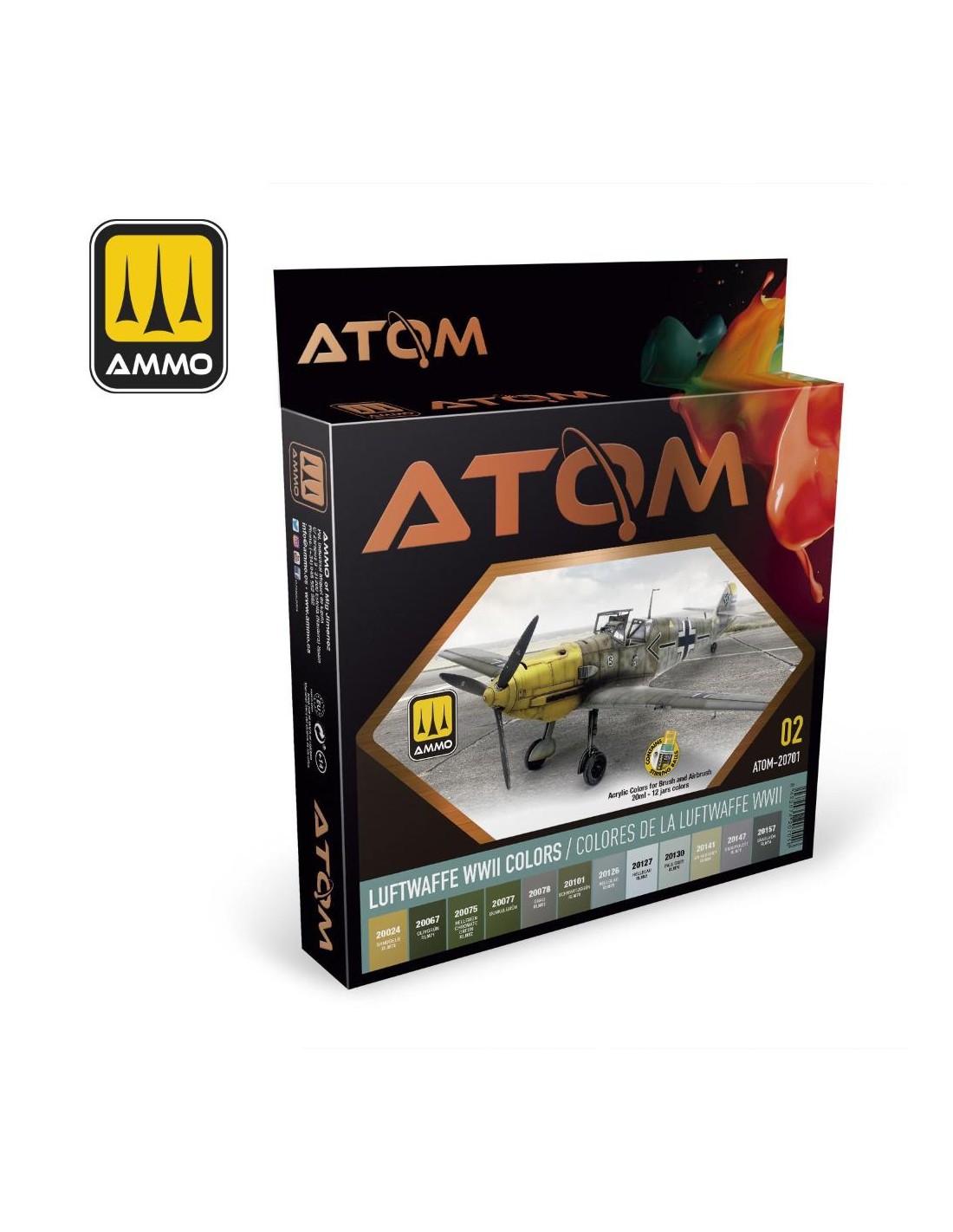 Set di 12 colori ATOM a base d'acqua di alta qualità appositamente selezionati per rappresentare gli schemi mimetici utilizzati dalla Luftwaffe durante la seconda guerra mondiale. Con questo set potrai dipingere la maggior parte degli aerei tedeschi utilizzati nella guerra nel teatro europeo, sul fronte orientale e in Nord Africa.