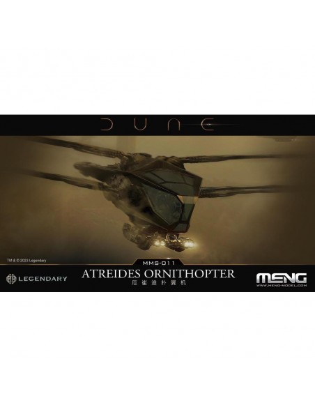 Apertura alare 169 mm, lunghezza 95 mmQuesto kit include anche un espositore.Questa è una replica in miniatura dell'ornitottero Atreides nel film Dune.Anche se si tratta di una replica in formato mini, le sue ali sono libere di sbattere.Una volta assemblato, il modello può essere commutato liberamente tra l'opzione di parcheggio a terra o l'opzione di volo.