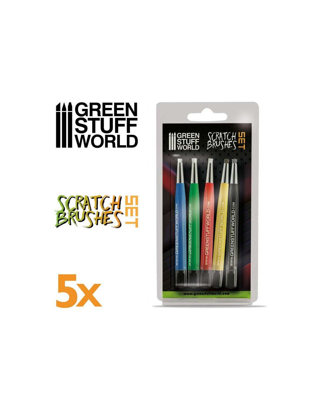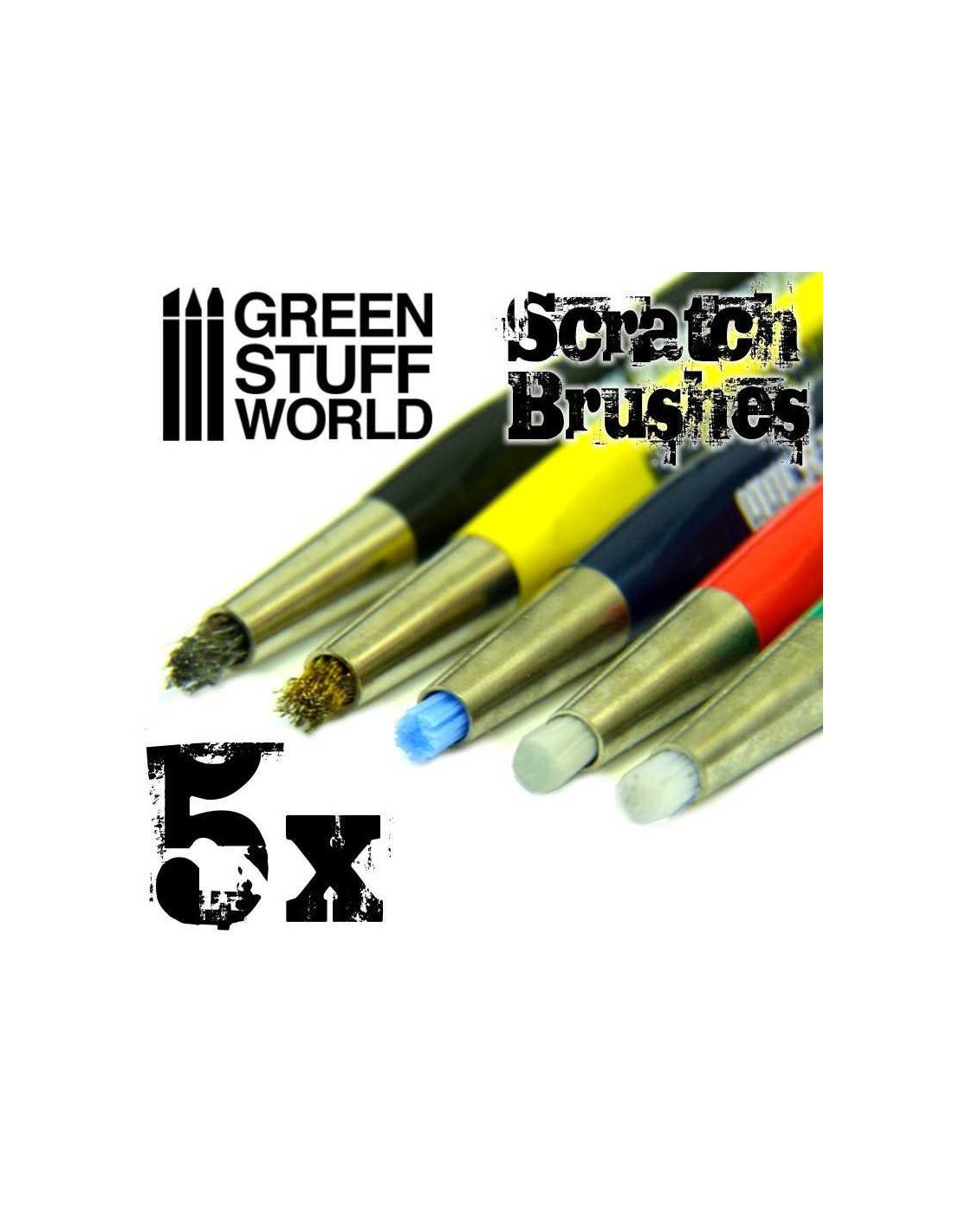 Grazie alle diverse punte disponibili in questo set di Spazzole Scratch, questi utensili sono perfetti per pulizie difficili, cosí come per creare effetti di usura e graffi nei tuoi diorami, e altri.