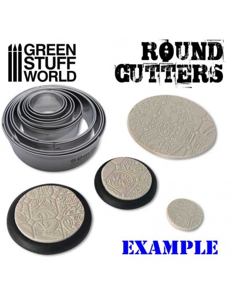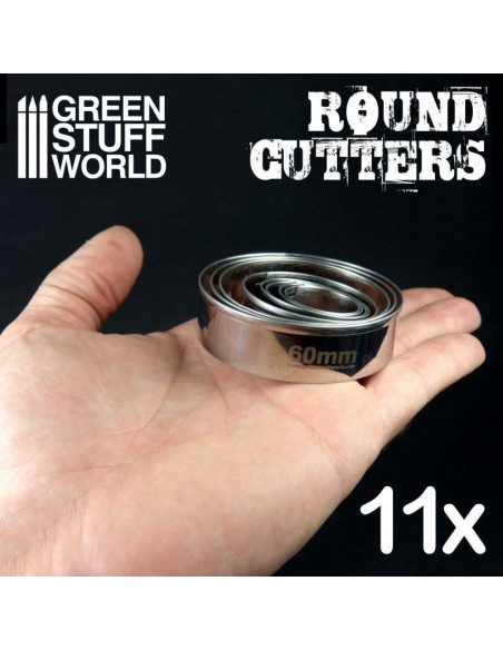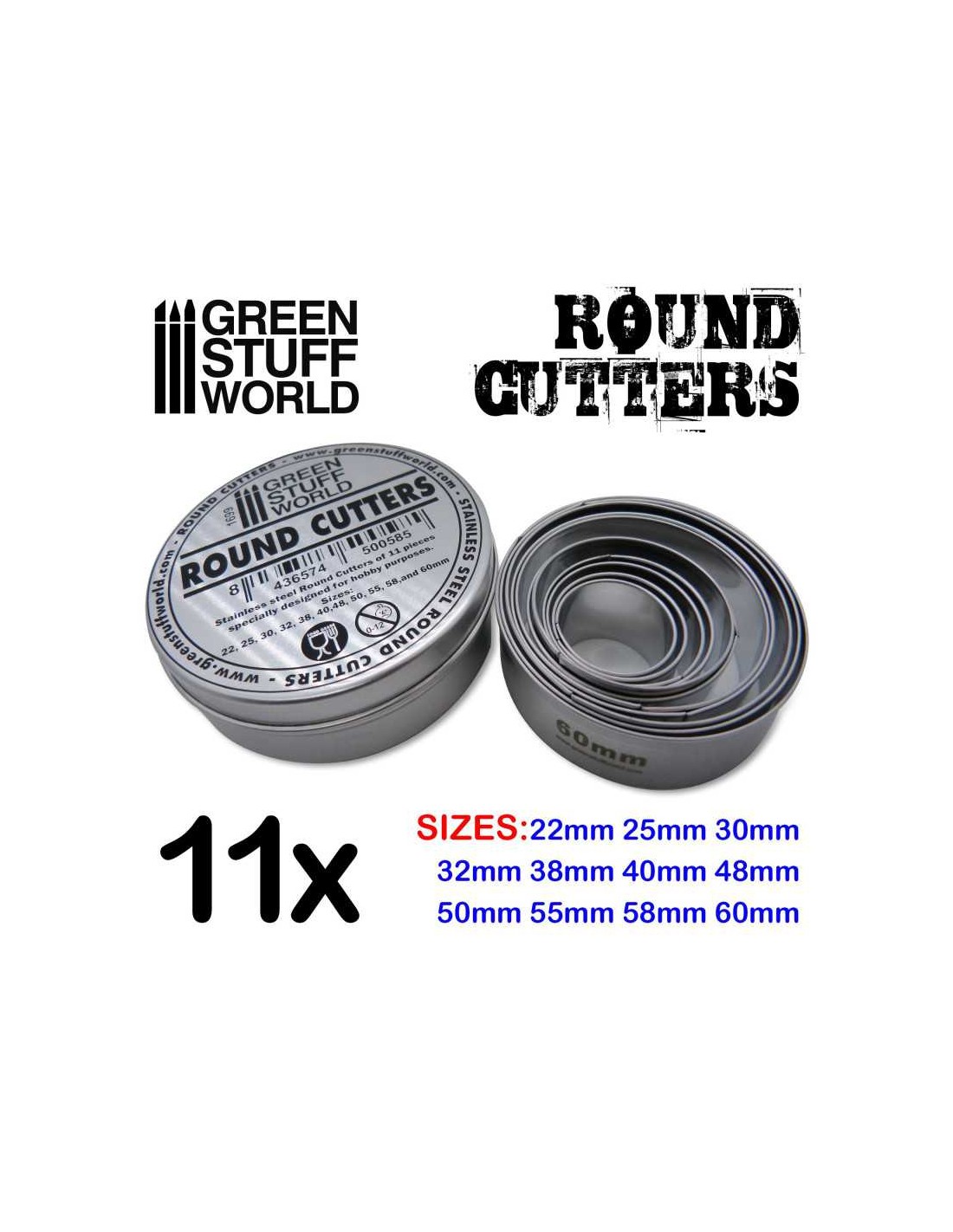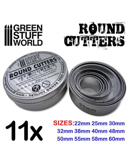 Kit di cutter circolari in acciaio inox nelle dimensioni più frecuenti per creare basi e filler per basi. Potrai tagliare argille e altri materiali velocemente.