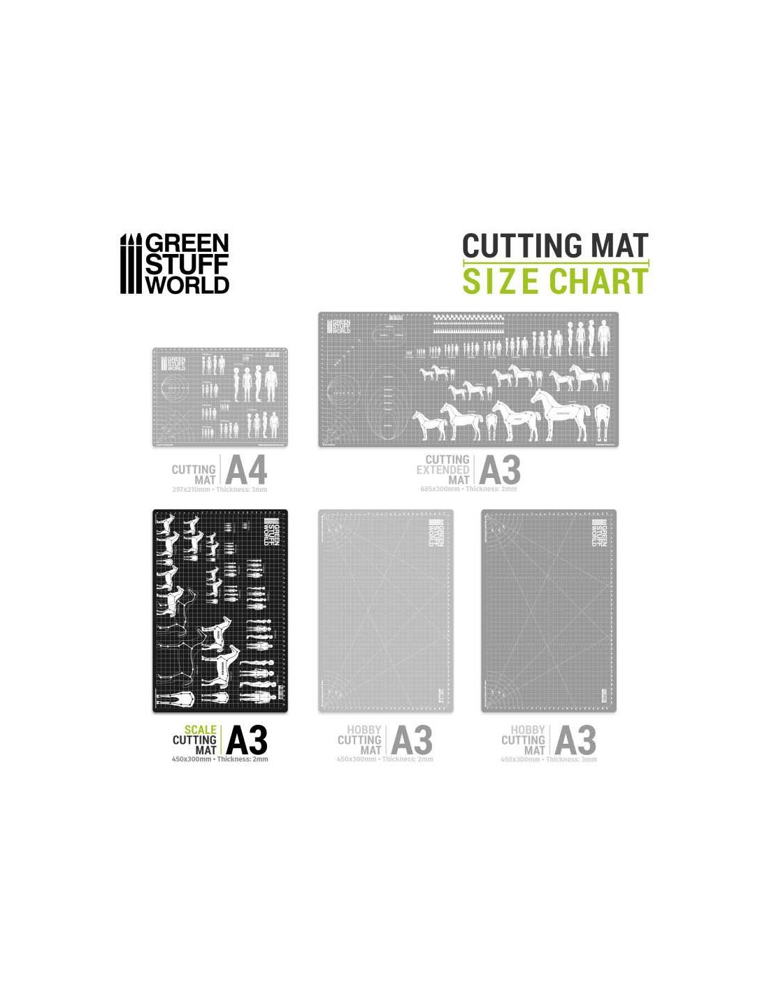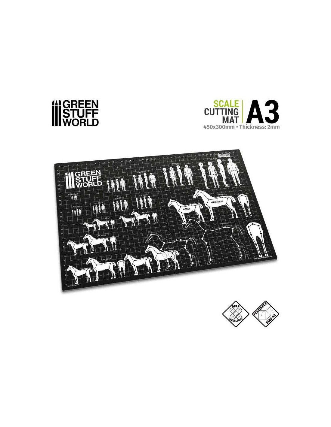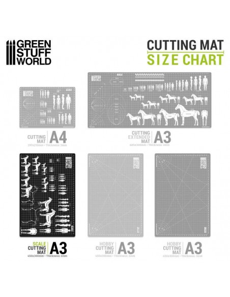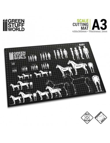 Sul tappetino sono stampate le linee guida delle scale più comuni, che ti permetteranno di creare armature per scolpire miniature sia da uomo che da donna. Troverai anche le stesse scale e linee guida per creare armature per cavalli e destrieri da guerra.