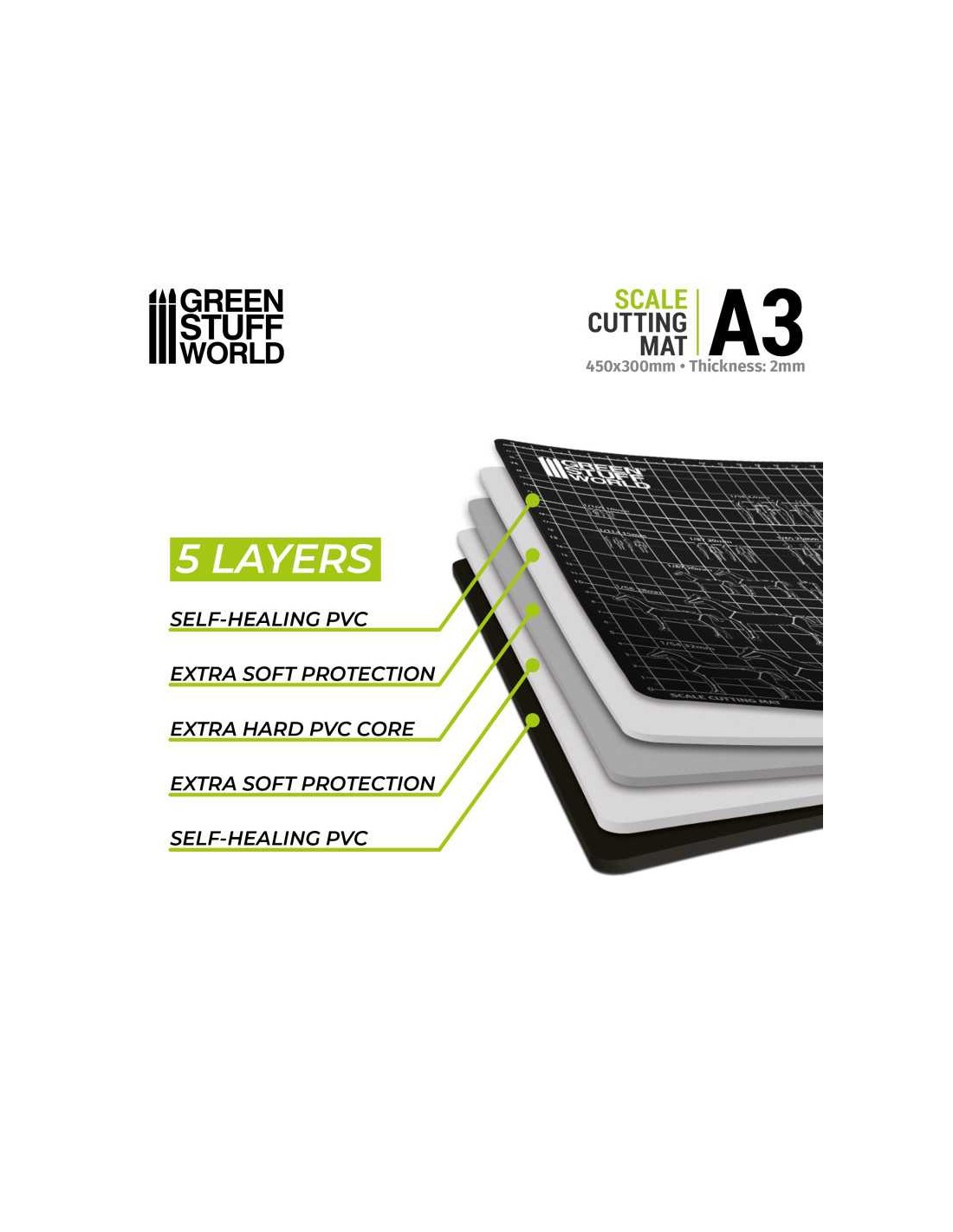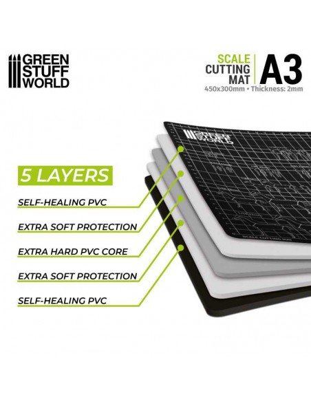 Tappetino da taglio con scale perfetto per modellare, scolpire, prendere misure e per proteggere le superfici da tagli e macchie di vernice. Questo set contiene un tappetino da taglio pieghevole ad alta densità, che ti aiuterà a ottenere l'angolo e la lunghezza di taglio perfette. Il tipo di materiale impiegato evita che le lamette scivolino, rendendo semplice il taglio e diminuendo le possibilità di lesioni.