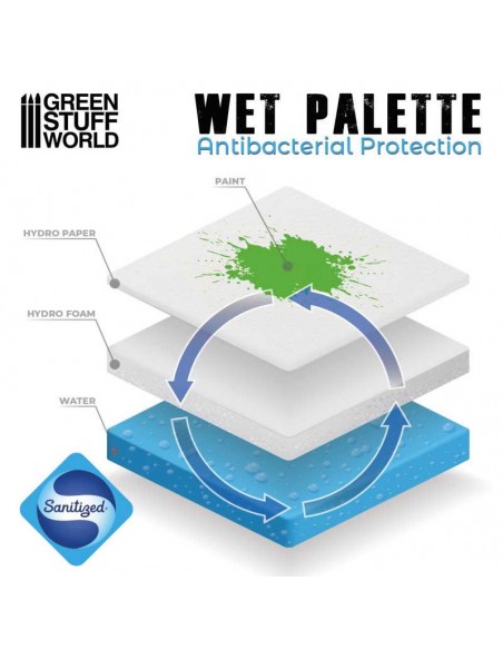 La tavolozza umida GSW o Wet Palette è una tavolozza che, a differenza delle tavolozze tradizionali, ritarda il processo di asciugatura naturale della vernice da utilizzare. Questo fa sì che la vernice della tavolozza si possa utilizzare più a lungo, consentendo sessioni di verniciatura più lunghe mantenendo la vernice fresca ed evitando sprechi.