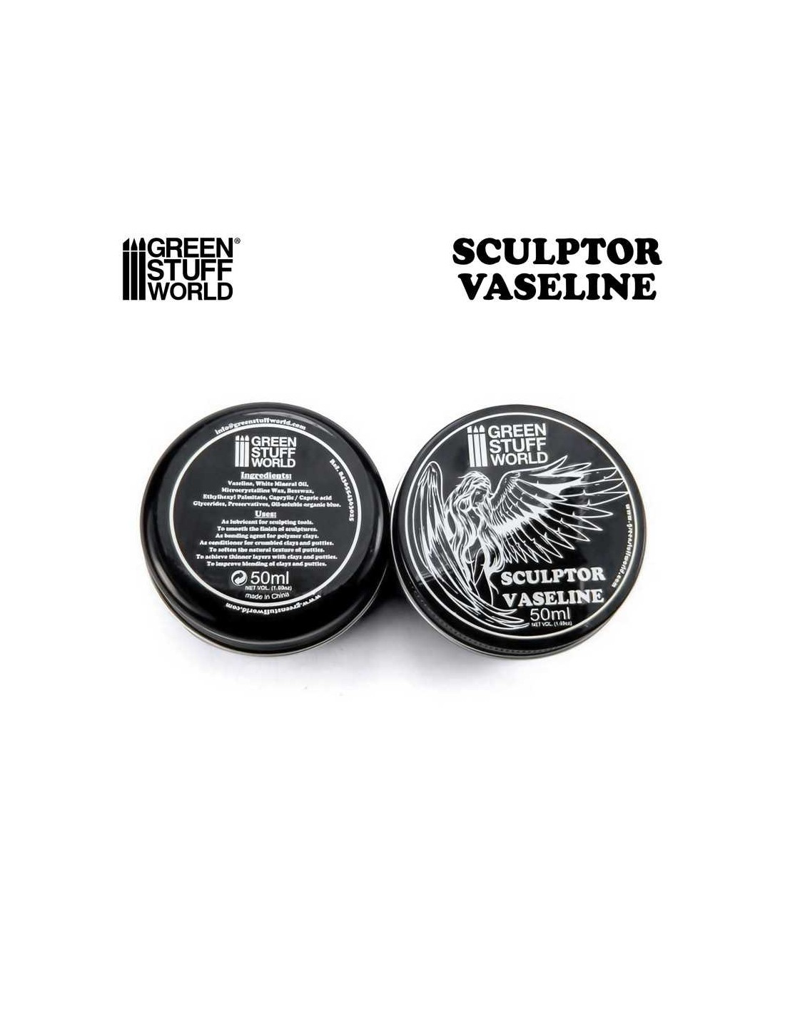 La vaselina per modellare e scolpire è un prodotto specializzato utilizzato nel campo della scultura e della modellazione. Si tratta di una formulazione creata da Green Stuff World mescolando varie gelatine di petrolio raffinate, varie cere, oli, cera d'api e altri componenti minerali. Questa miscela dà origine a una sostanza semisolida, inodore e dal caratteristico colore blu, che offre diverse proprietà benefiche per scultori e modellatori.
