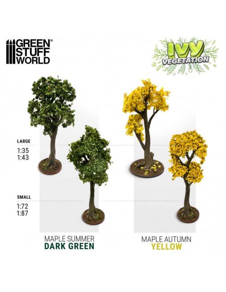 I fogli di vegetazione Edera di Green Stuff World sono fogli specializzati con foglie di diversi tipi, colori e dimensioni, progettati per replicare l'aspetto delle foglie di vite e la frondosità di un albero in scala miniaturizzata.