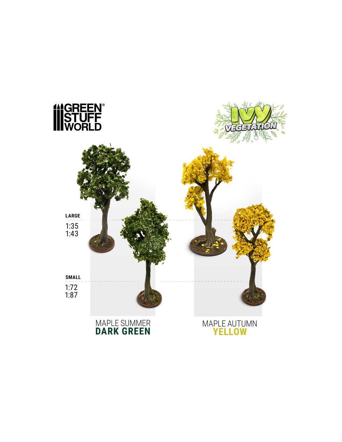 Green Stuff World offre un'ampia selezione di materiali di base per miniature, foglie per hobby, vegetazione e molti altri tipi di piante di carta da scegliere in base al vostro progetto. Con la nostra varietà di prodotti, sarete in grado di creare scene, basi per figure e miniature e diorami in modo facile e veloce, portando il realismo a un nuovo livello.