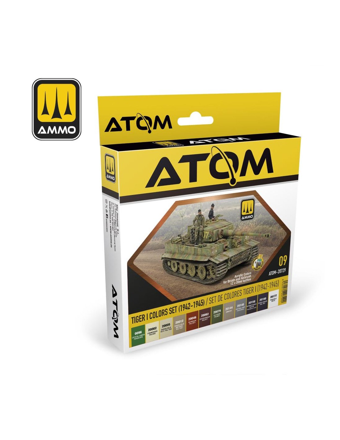 Questo set include i colori necessari e precisi per dipingere l'esterno di un King Tiger. Dai caratteristici colori di base Dunkelgelb e dal mimetismo marrone e verde di molti modelli mimetici ai colori precisi per attrezzi e cingoli, inclusa la vernice lavabile bianca per i mimetici invernali. Sebbene il set sia un'edizione speciale per il King Tiger di Takom, serve per dipingere qualsiasi altro King Tiger e molti altri carri armati tedeschi durante la fine della guerra.