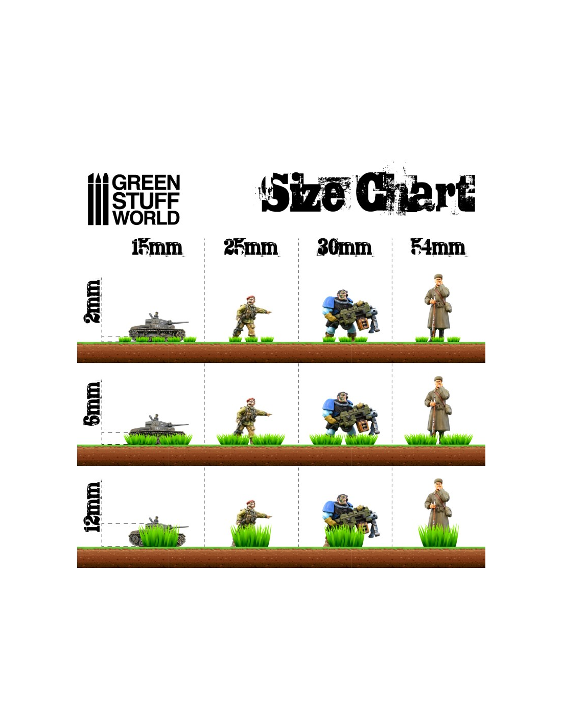 Innovativi ciuffi di erba (o Tufts in inglese) autoadesivi perfetti per decorare basi per miniature, modellini, scenografie, paesaggi. Basta staccare i ciuffi di erba con delle pinzette. e fissarli con la loro colla autoadesiva sulla superfice da decorare. Prendere in considerazione che, nonostante siano autoadesivi, una goccia di colla potrebbe esser necessaria su alcune superfici irregolari per ottenere una soluzione permanente.