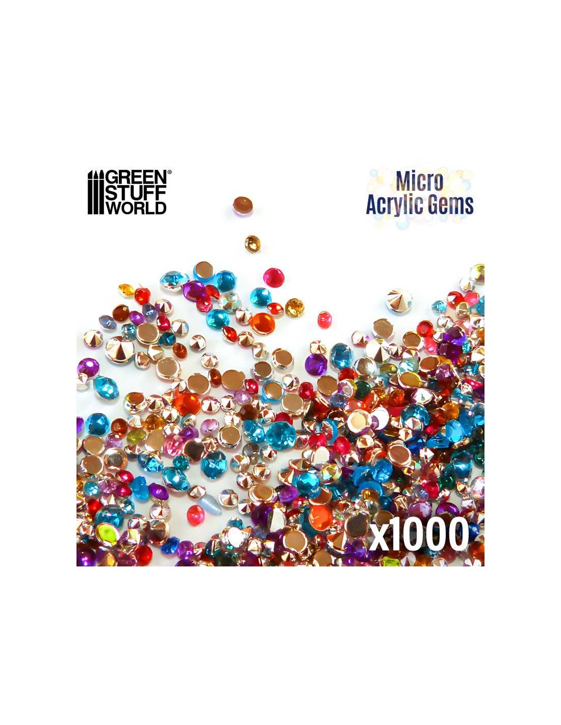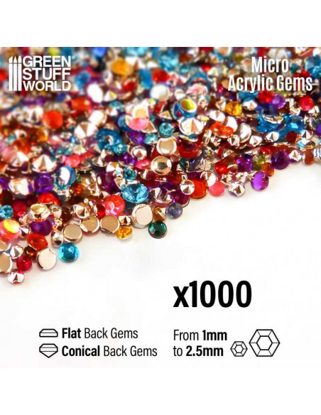 Set di 1000x Gemme Acriliche perfette per creare conversioni incredibili. Tutti i colori. Dimensioni da 1 mm fino a 2,5 mm.