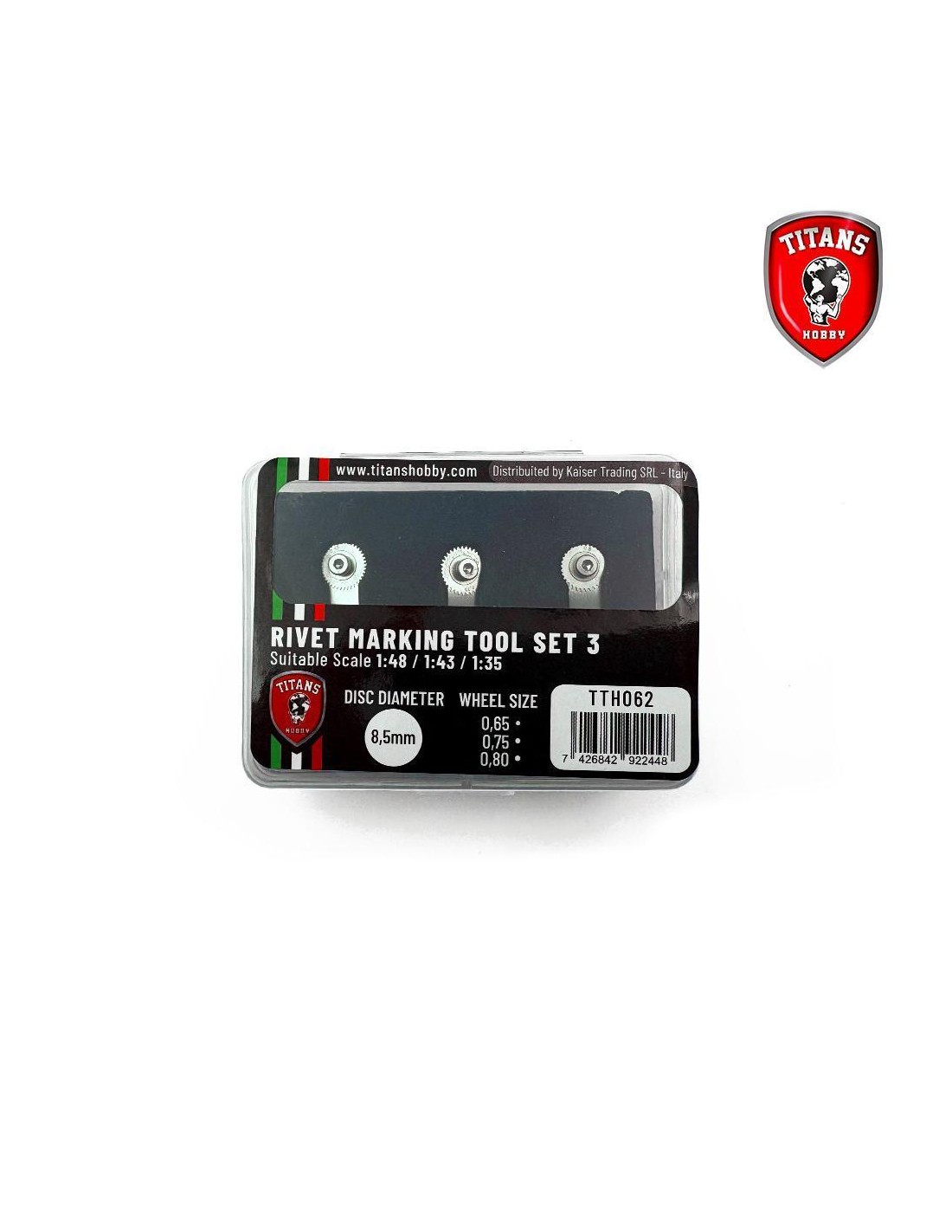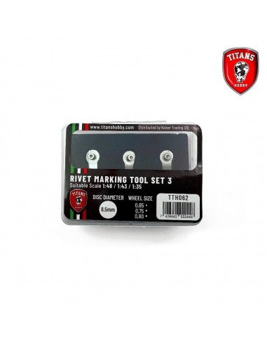 Set 3 Di Utensili Per Rivetti - 3 Rotelle diam.8,5mm. per scala 1:48/1:43/1:35 x mm. 0.65/0.75/0.80