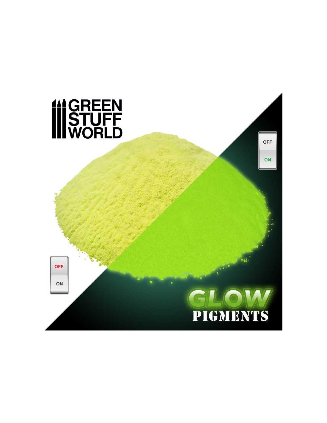 I pigmenti glow in the dark, di colore Giallo e Arancione, si illuminano in modo diverso dipendendo dal tipo di luce con la quale siano stati caricati.