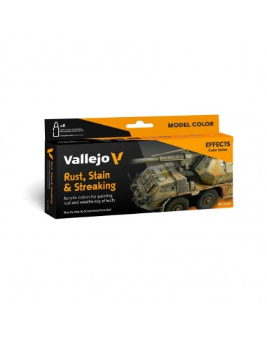 Una selezione di colori creati per rappresentare gli effetti della ruggine sulle superfici metalliche, gli agenti atmosferici su diverse superfici e l’accumulo di sporco in aree specifiche. Se vuoi prendere gli effetti che applichi ai tuoi veicoli e diorami ad un livello più alto, questo è il set per te. Include una guida completa di pittura passo-passo di Rob Ferreira (Scratchmod).