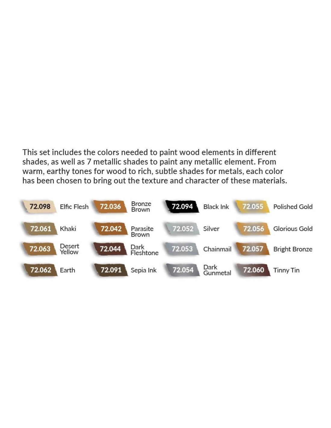 This set includes the colors needed to paint leather elements in different shades, as well as 7 metallic shades to paint any metallic element. From warm, earthy tones for leather to rich, subtle shades for metals, each color has been chosen to bring out the texture and character of these materials.