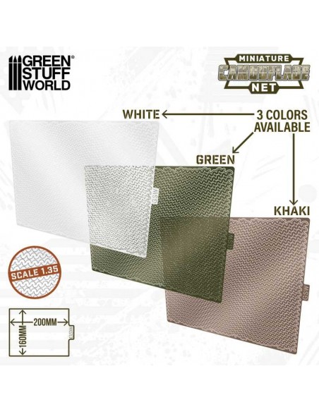 Migliora il tuo modello militare: combina queste reti mimetiche con le vernici Green Stuff World, i prodotti per l'invecchiamento, i basette in legno, i ciuffi d'erba e altri articoli scenografici per ottenere un risultato finale realistico.