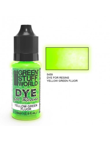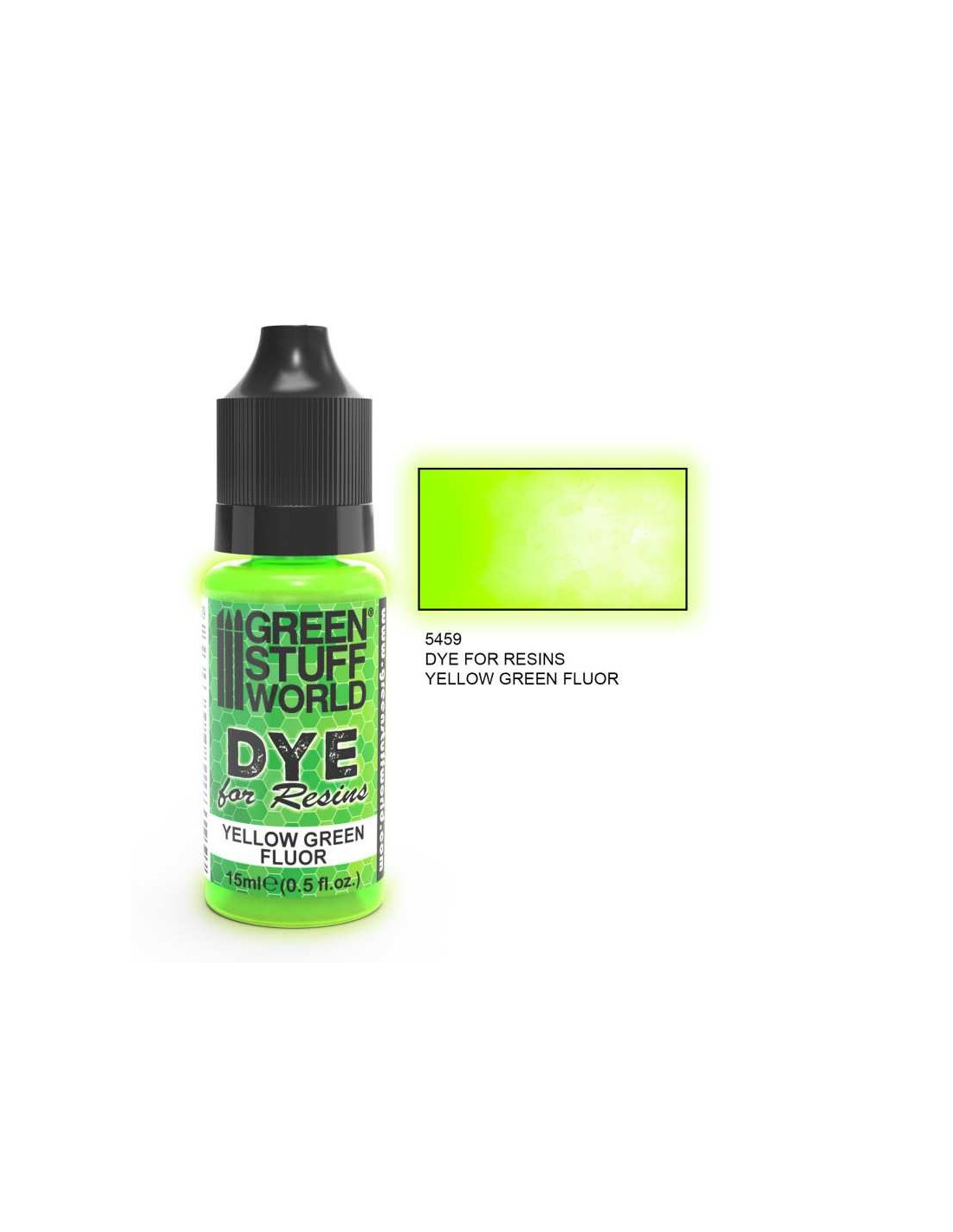 Colorante per resine epossidiche, resine UV, resine per stampanti 3D e poliuretano. L’effetto fluorescente di questo colorante per resine giallo-verde fluor risulterà molto più intenso nella resina epossidica e nelle resine per stampanti 3D rispetto alla resina UV, dove sarà leggermente meno intenso.