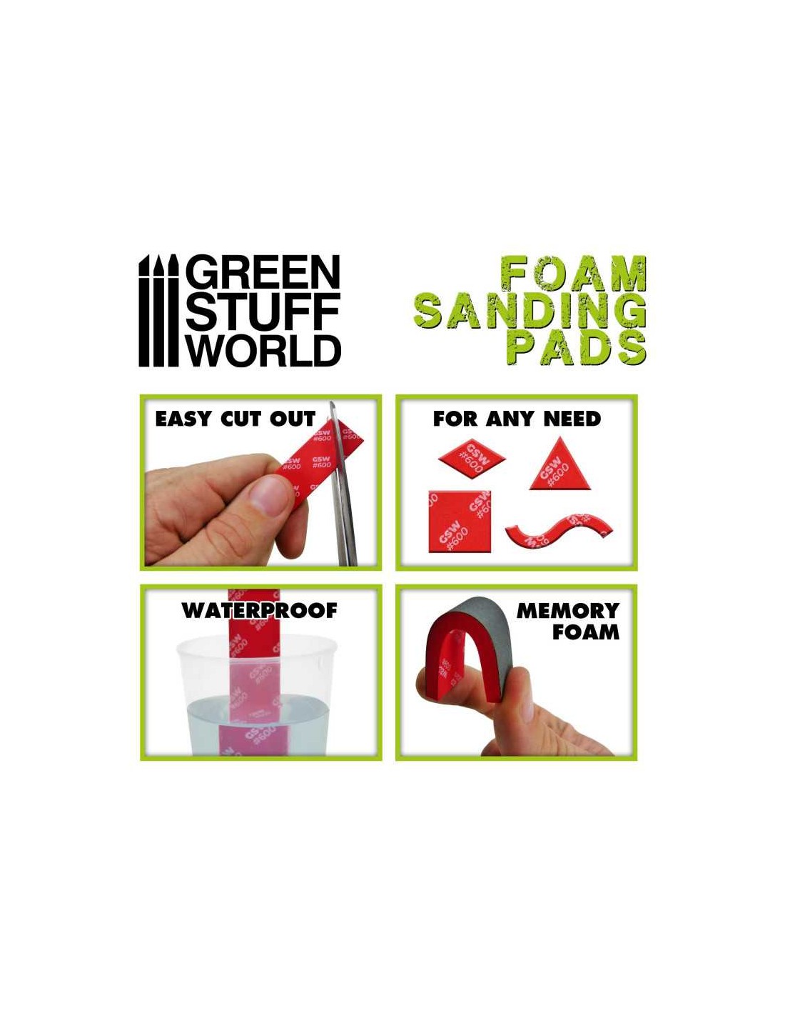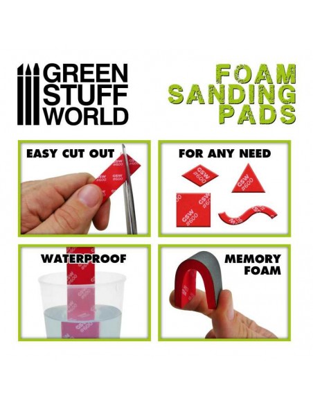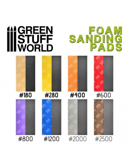 I cuscinetti o spugne di Hobby sono disponibili in diverse grane e sono adeguati per una levigatura grossolana o fine. Ogni grana è contrassegnata da un colore diverso ed è stata prodotta in morbida e flessibile schiuma EVA che le rende perfette per la levigatura di bordi curvi, nonché per essere tagliate in qualsiasi dimensione o forma che permetta di raggiungere le zone più difficili.