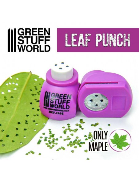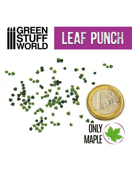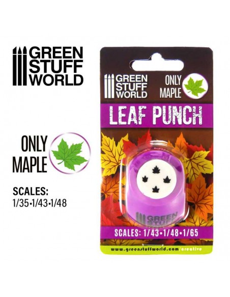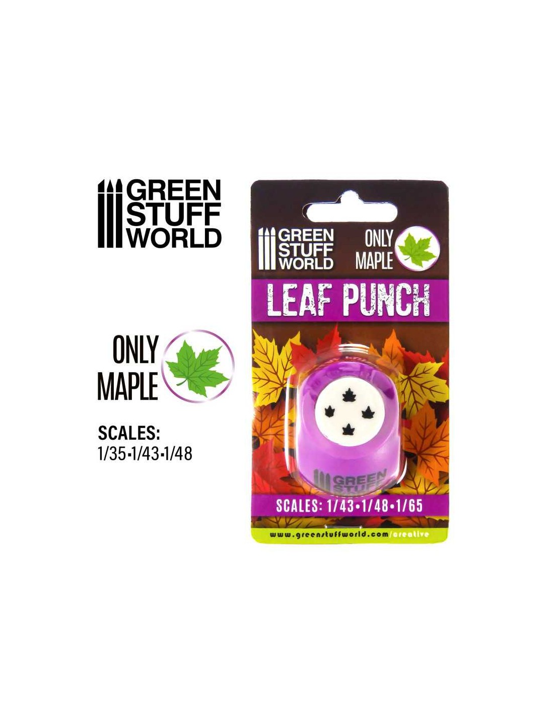 Perforatore per fabbricare foglie in miniatura compatibili con scale da1:43 1:48 1:65 (32mm, 28mm, e 25mm).Si possono utilizzare diversi tipi di carta e materiali. Consigliamo l'uso di foglie secche in diversi colori. Questa fustella crea 4 tipi di mini foglie di ACERO.