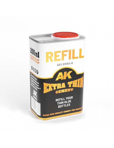 AK lancia la ricarica per i tuoi flaconi di colla. Non buttare via i tuoi flaconi di colla preferiti e risparmia acquistando la colla per ricaricarli, rispettando l'ambiente e riducendo gli sprechi. La bomboletta è dotata di un comodo tappo dosatore ad apertura facile per controllare il riempimento dei flaconi. Disponibile in 3 tipi di colla: Extra Sottile, Rapida e Standard.