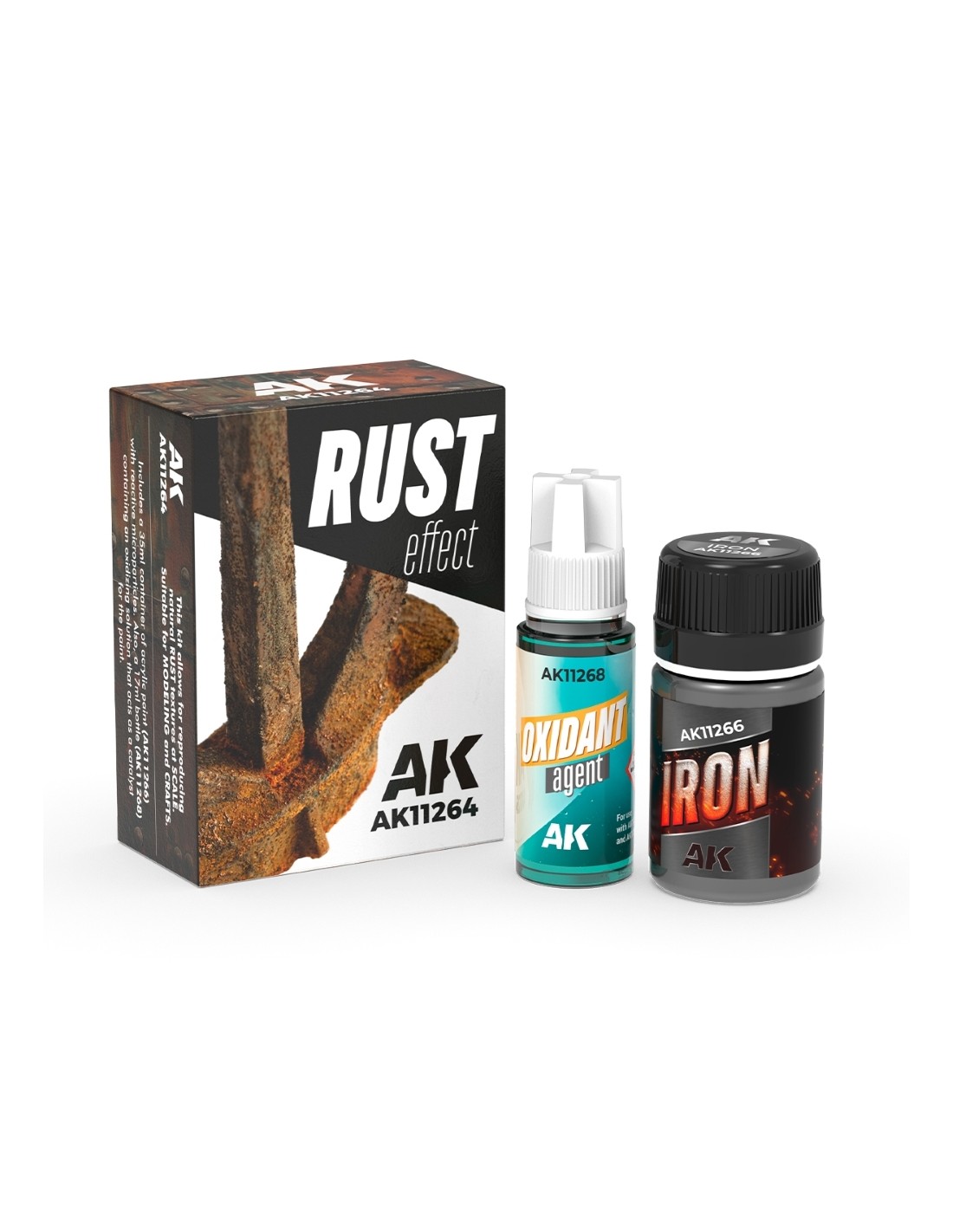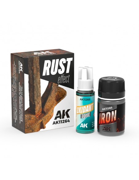 Questo kit permette di ricreare effetti ruggine altamente realistici in scala su modelli e miniature. Adatto per modellismo e artigianato.