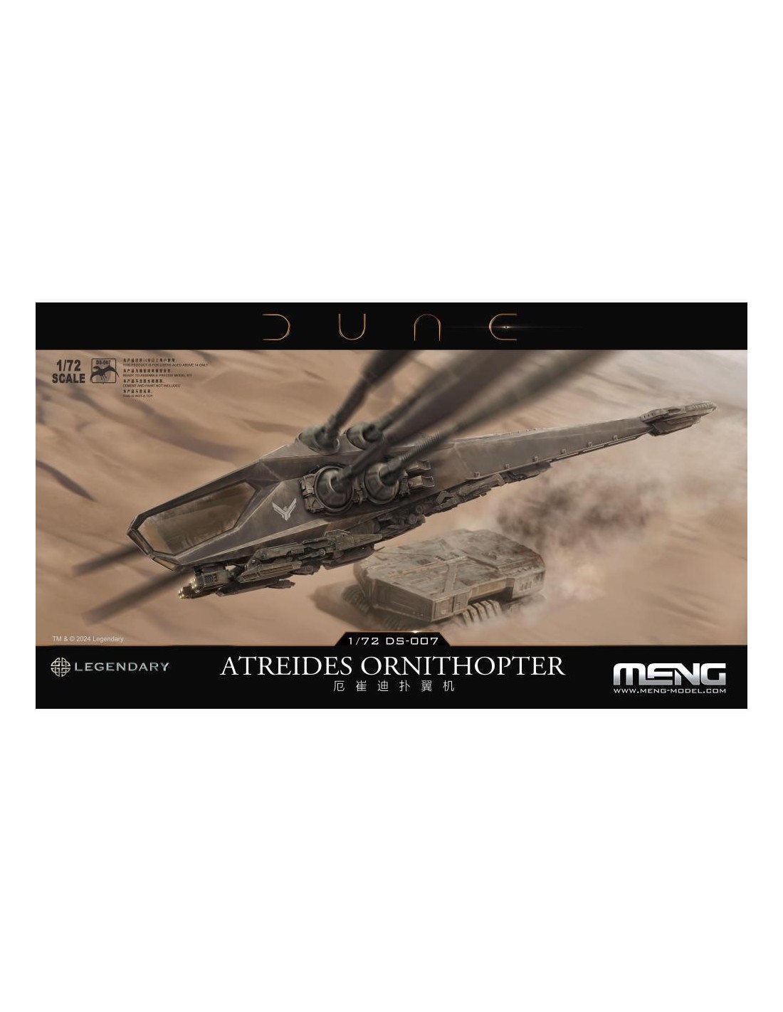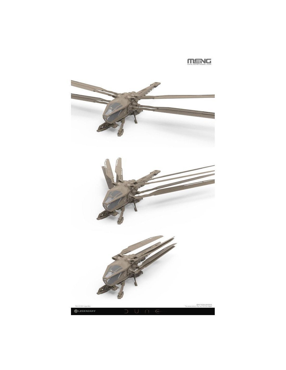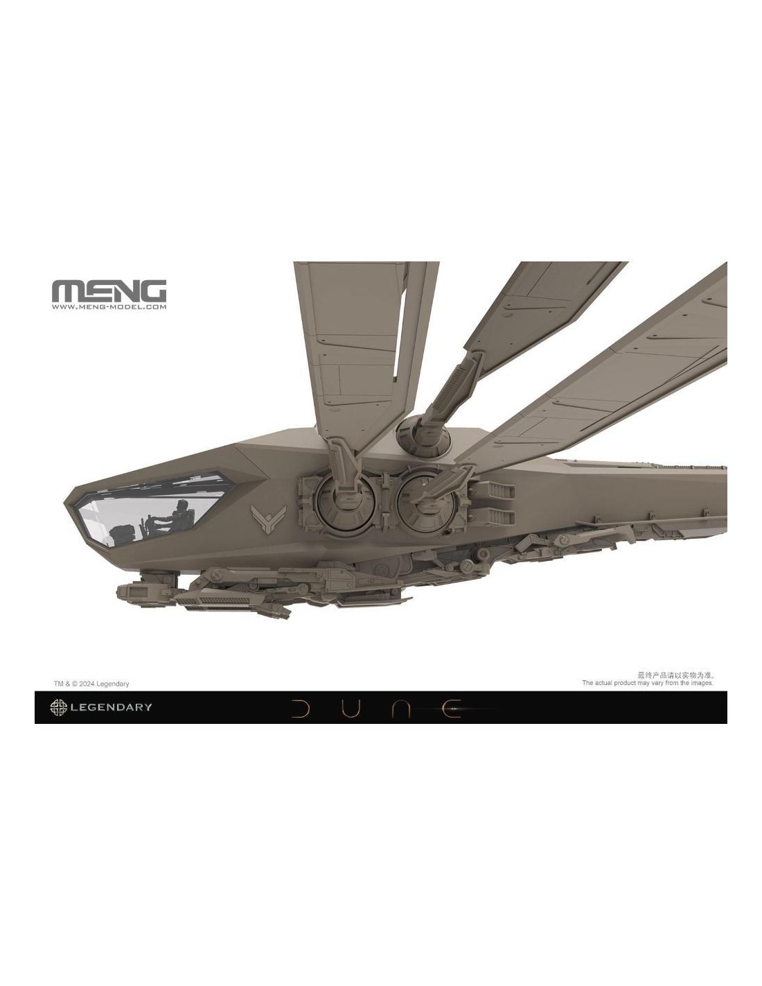 MENG è pronta a svelare il kit modello DS-009 1/72 Dune Harkonnen Ornithopter, concesso in licenza da Legendary Entertainment. Ispirato da Legendary's Dune: Part Two, l'adattamento per il grande schermo del regista Denis Villeneuve del capolavoro di fantascienza DUNE di Frank Herbert, questo modello meticolosamente realizzato, ora disponibile come kit dal design intricato, incapsula davvero l'essenza di questo iconico velivolo. L'Onitottero Harkonnen, contraddistinto dalle sue sei ali agili, fornisce una notevole portanza attraverso rapidi battitori alari. Questa caratteristica non solo facilita i decolli e gli atterraggi verticali, ma fornisce anche manovrabilità e velocità eccezionali in volo. Progettate ingegnosamente, le ali dell'ornitottero possono essere retratte per consentire discese ad alta velocità, preservando la sua agilità caratteristica. La straordinaria macchina volante è un'aggiunta preziosa per i fan di Dune e una nuova sfida per i modellisti. Questo kit cattura accuratamente gli intricati dettagli dell'Harkonnen Ornithopter, dalle ali al carrello di atterraggio. Ogni parte è attentamente progettata per offrire una rappresentazione altamente realistica e garantire il massimo divertimento durante l'assemblaggio. Il modello ha un'apertura alare di 626 mm e una lunghezza di 293 mm una volta assemblato. Questo kit include quattro personaggi dell'equipaggio, parti trasparenti per il tettuccio della cabina di pilotaggio e un espositore. Controlliamo i dettagli. Questo modello dettagliato presenta il design e la forma accurati dell'ornitottero Harkonnen. L'Ornitottero Harkonnen in scala 1/72 con un'apertura alare di 626 mm offre un senso di stupore senza pari. Le sue enormi dimensioni diventano ancora più pronunciate rispetto all'Ornitottero Harkonnen MMS-014. (L'ornitottero Harkonnen MMS-014 è venduto separatamente.). Una combinazione di componenti del telaio e parti trasparenti rappresenta il tettuccio della cabina di pilotaggio. Questo kit include quattro personaggi dell'equipaggio. Il meccanismo ad ingranaggi all'interno della fusoliera consente il controllo indipendente di ciascuna coppia di ali, consentendo alle sezioni sinistra e destra di eseguire movimenti di sbattimento su e giù insieme. Le ali possono ruotare, ritrarsi e aprirsi secondo le impostazioni. Il kit comprende due set di sistemi di carrello di atterraggio intercambiabili, che riproducono sia la modalità di atterraggio che quella di volo. Questo kit include un supporto per la modalità aereo. Che tu sia un fedele fan di Dune o un modellista con un'immaginazione infinita per il mondo della fantascienza, o entrambi, questo modello di ornitottero sarà il pezzo forte della tua collezione. Rappresenta non solo la tecnologia del futuro immaginato da Herbert, ma funge anche da ponte che ti collega all'eccitazione piena di azione di Dune. Prova la gioia di assemblare questo ornitottero e lascialo volare sulla tua libreria!