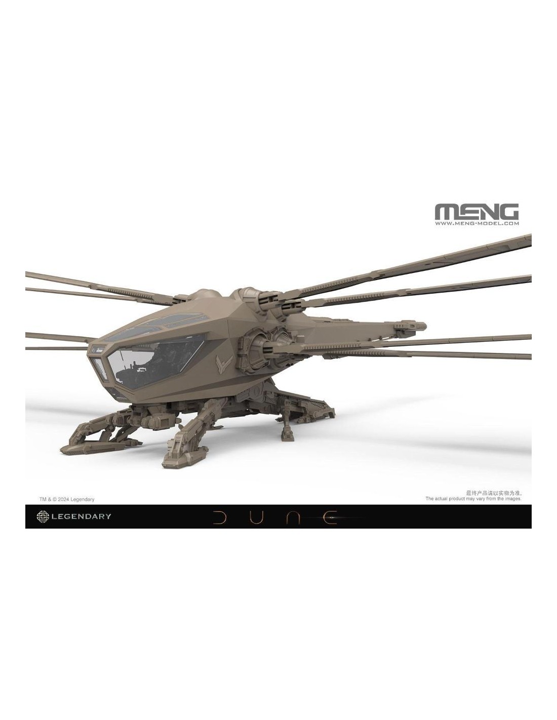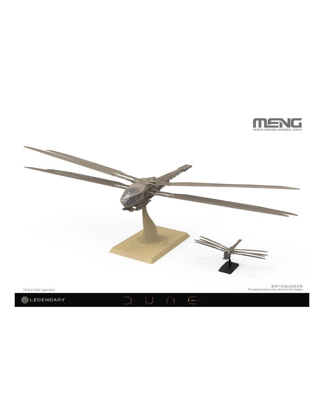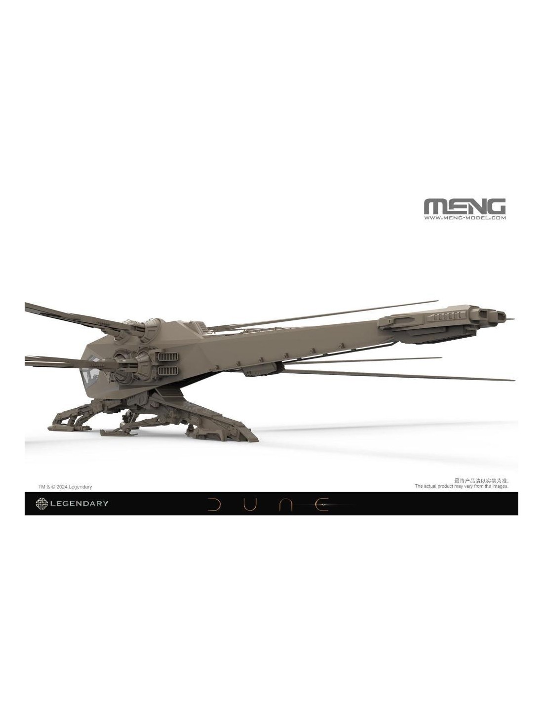 MENG è pronta a svelare il kit modello DS-009 1/72 Dune Harkonnen Ornithopter, concesso in licenza da Legendary Entertainment. Ispirato da Legendary's Dune: Part Two, l'adattamento per il grande schermo del regista Denis Villeneuve del capolavoro di fantascienza DUNE di Frank Herbert, questo modello meticolosamente realizzato, ora disponibile come kit dal design intricato, incapsula davvero l'essenza di questo iconico velivolo. L'Onitottero Harkonnen, contraddistinto dalle sue sei ali agili, fornisce una notevole portanza attraverso rapidi battitori alari. Questa caratteristica non solo facilita i decolli e gli atterraggi verticali, ma fornisce anche manovrabilità e velocità eccezionali in volo. Progettate ingegnosamente, le ali dell'ornitottero possono essere retratte per consentire discese ad alta velocità, preservando la sua agilità caratteristica. La straordinaria macchina volante è un'aggiunta preziosa per i fan di Dune e una nuova sfida per i modellisti. Questo kit cattura accuratamente gli intricati dettagli dell'Harkonnen Ornithopter, dalle ali al carrello di atterraggio. Ogni parte è attentamente progettata per offrire una rappresentazione altamente realistica e garantire il massimo divertimento durante l'assemblaggio. Il modello ha un'apertura alare di 626 mm e una lunghezza di 293 mm una volta assemblato. Questo kit include quattro personaggi dell'equipaggio, parti trasparenti per il tettuccio della cabina di pilotaggio e un espositore. Controlliamo i dettagli. Questo modello dettagliato presenta il design e la forma accurati dell'ornitottero Harkonnen. L'Ornitottero Harkonnen in scala 1/72 con un'apertura alare di 626 mm offre un senso di stupore senza pari. Le sue enormi dimensioni diventano ancora più pronunciate rispetto all'Ornitottero Harkonnen MMS-014. (L'ornitottero Harkonnen MMS-014 è venduto separatamente.). Una combinazione di componenti del telaio e parti trasparenti rappresenta il tettuccio della cabina di pilotaggio. Questo kit include quattro personaggi dell'equipaggio. Il meccanismo ad ingranaggi all'interno della fusoliera consente il controllo indipendente di ciascuna coppia di ali, consentendo alle sezioni sinistra e destra di eseguire movimenti di sbattimento su e giù insieme. Le ali possono ruotare, ritrarsi e aprirsi secondo le impostazioni. Il kit comprende due set di sistemi di carrello di atterraggio intercambiabili, che riproducono sia la modalità di atterraggio che quella di volo. Questo kit include un supporto per la modalità aereo. Che tu sia un fedele fan di Dune o un modellista con un'immaginazione infinita per il mondo della fantascienza, o entrambi, questo modello di ornitottero sarà il pezzo forte della tua collezione. Rappresenta non solo la tecnologia del futuro immaginato da Herbert, ma funge anche da ponte che ti collega all'eccitazione piena di azione di Dune. Prova la gioia di assemblare questo ornitottero e lascialo volare sulla tua libreria!