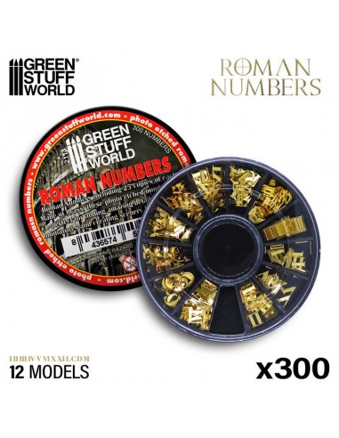 Collezione di 300 simboli metallici a tema romano. Si può scegliere tra 12 tipi diversi, organizzati in diversi scompartimenti. Sono perfetti per arricchire con dettagli le armature, le arme e gli stendardi delle figure e miniature o per decorare diorami. Consigliamo di utilizzare colla adesiva di cianoacrilato in piccole quantità.