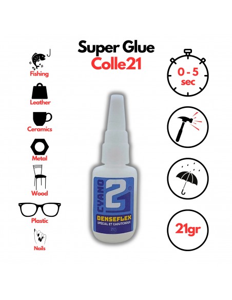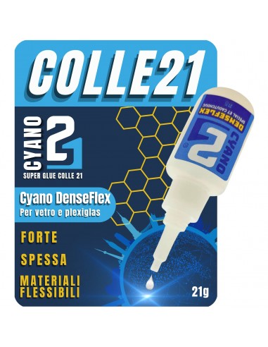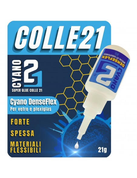 La Super Glue Colle21 DENSEFLEX è una colla cianoacrilica professionale, densa ed elastica, progettata per rispondere alle esigenze più elevate in fatto di incollaggio.