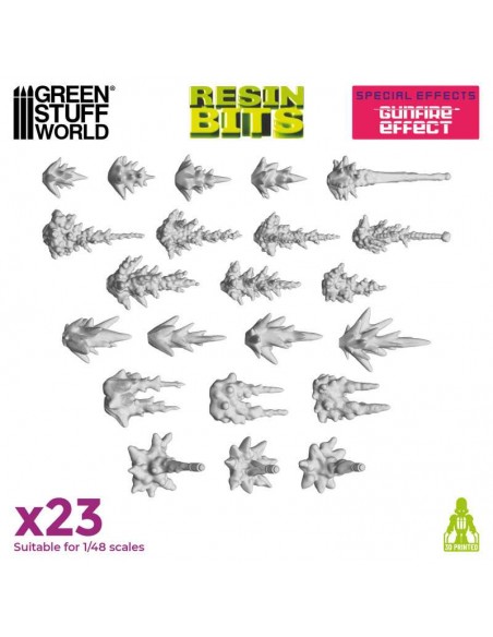 Sono progettati con cura per adattarsi alla canna di qualsiasi arma da fuoco nelle vostre miniature e nei vostri diorami. Che stiate ricreando una schermaglia storica o immaginando uno scenario fantascientifico, i nostri effetti di sparo aggiungono quel tocco finale di realismo che farà risaltare le vostre creazioni.