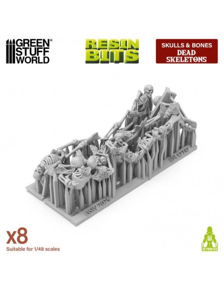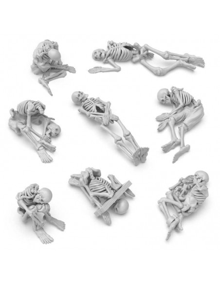 Dai un nuovo livello di realismo e drammaticità alle tue basi per miniature, diorami ed elementi scenografici con il nostro set di scheletri umani completi in resina di alta qualità, progettato per aggiungere tensione, narrativa e atmosfera a qualsiasi scenario. Questo set include scheletri in diverse posizioni e senza elementi che li limitino a un'epoca o a un universo specifico, il che li rende totalmente versatili. Grazie al loro livello di dettaglio, sono perfetti sia per dungeon fantasy medievali, scenari post-apocalittici o futuristici, sia per campi di battaglia storici o scene horror.