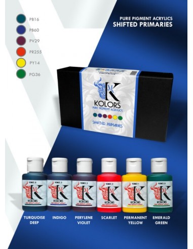 Il Pure Pigments Expansion Set 2: Shifted Primaries introduce sei nuovissimi colori monopigmento pensati per ampliare la tua gamma creativa e offrirti la massima libertà cromatica.All'interno del set: sei potenti colori acrilici Kimera Kolors