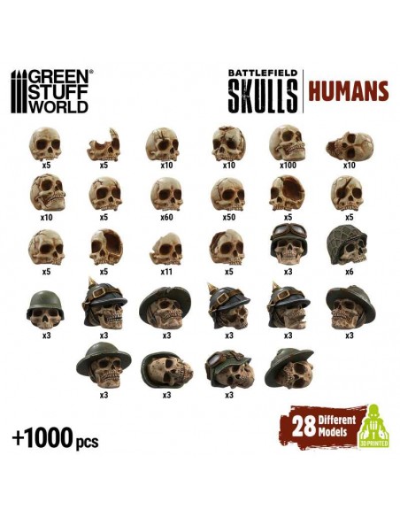 +1.000x Teschi stampati in 3D compatibili con Warhammer Skulls