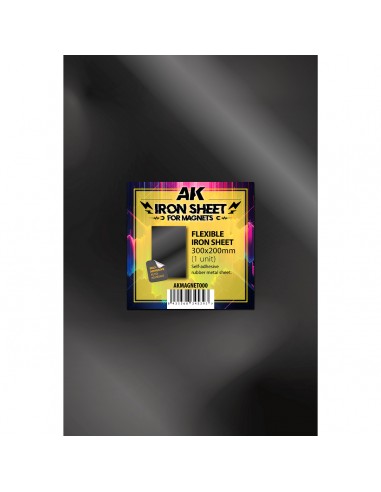 Foglio metallico autoadesivo in gomma flessibile con particelle di ferro per il fissaggio di miniature magnetizzate o magneti. I fogli metallici adesivi misurano 300×200 mm, hanno uno spessore di 0,9 mm e possono essere tagliati nella misura desiderata con l'aiuto di forbici o un taglierino.