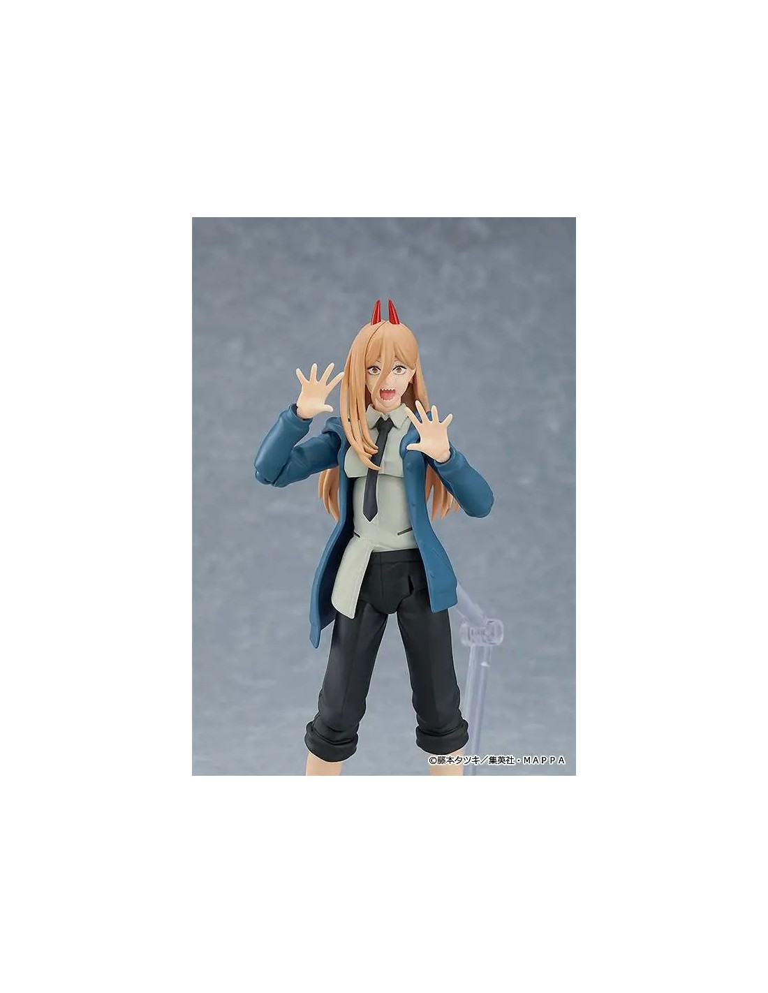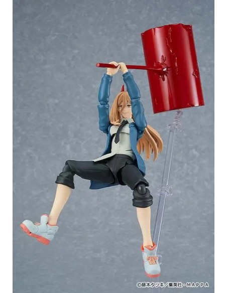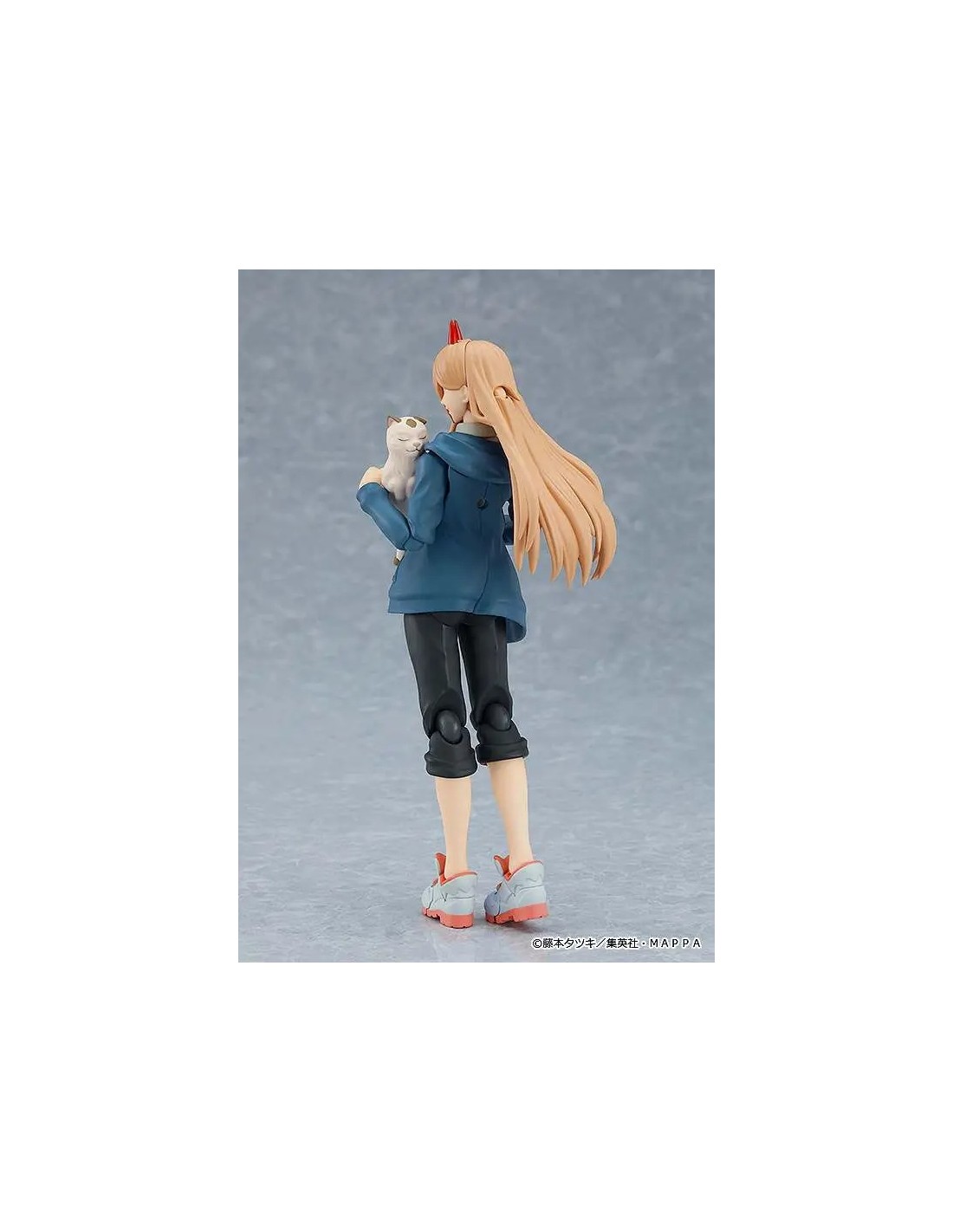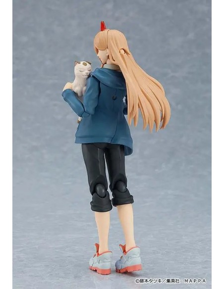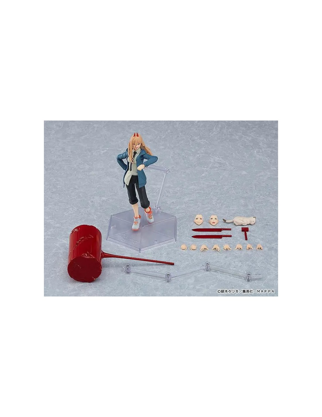 Nuova action figure Figma di Power, da Chainsaw Man! La figura è alta circa 15 cm ed è dotata di articolazioni e di accessori come volti intercambiabili, una piccola figura di Meowy, il martello, uno stand display e altro ancora.