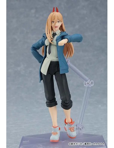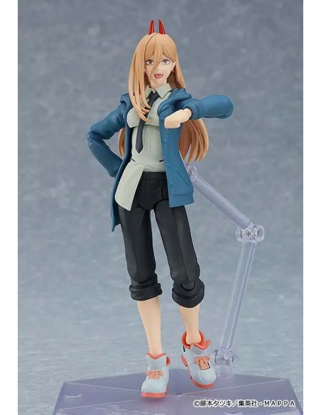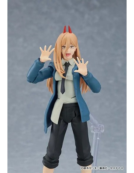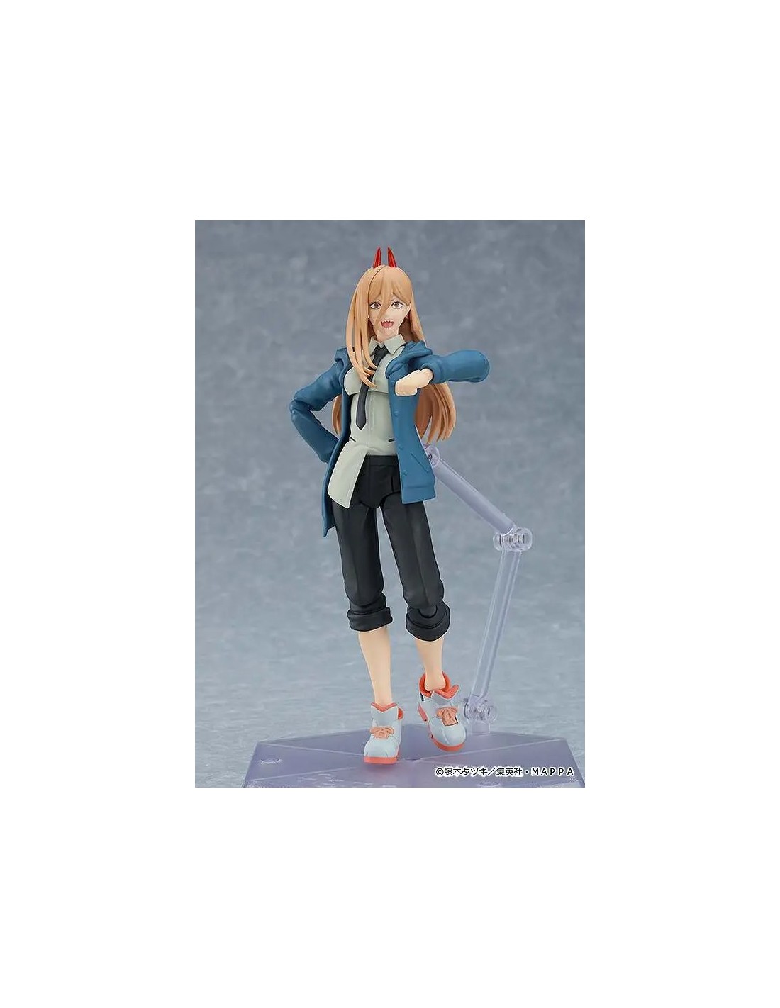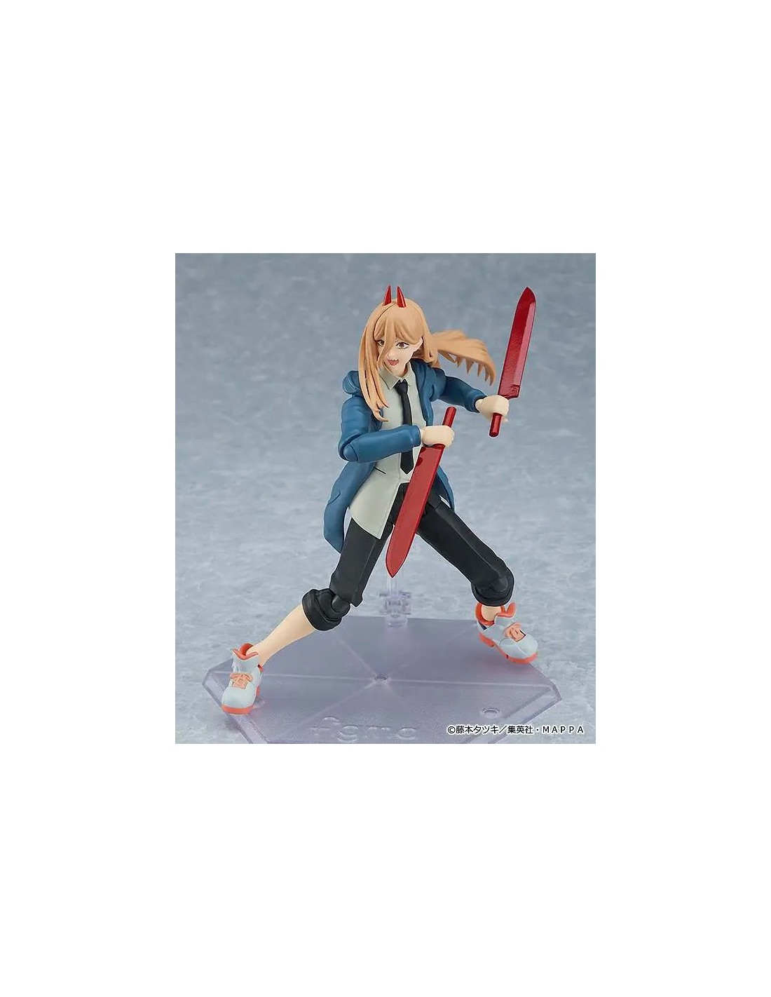Nuova action figure Figma di Power, da Chainsaw Man! La figura è alta circa 15 cm ed è dotata di articolazioni e di accessori come volti intercambiabili, una piccola figura di Meowy, il martello, uno stand display e altro ancora.