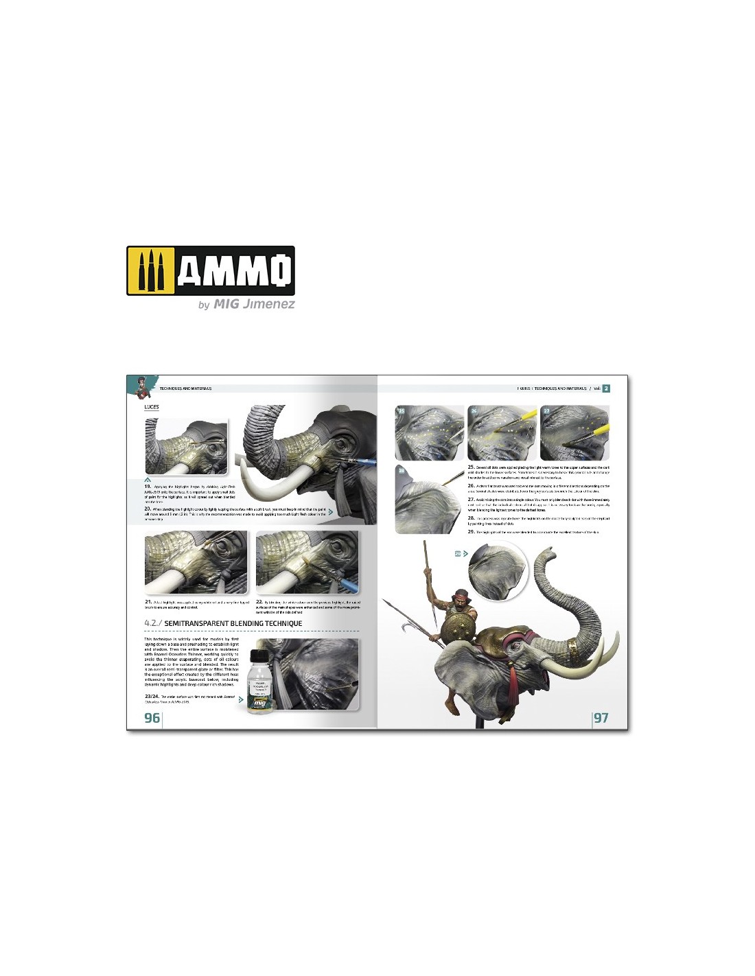 Il volume 2 dell'Enciclopedia di figure si concentra sui materiali, sulle procedure e sulle tecniche più adatte alla pittura e alla realizzazione di una miniatura. Una volta che gli elementi del linguaggio visivo come il colore, l'illuminazione, la forma e la trama sono stati appresi dal primo volume, è tempo di impegnarsi nelle tecniche pittoriche che consentono di rappresentare accuratamente ciascuno di questi elementi su qualsiasi figura in scala.