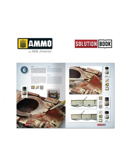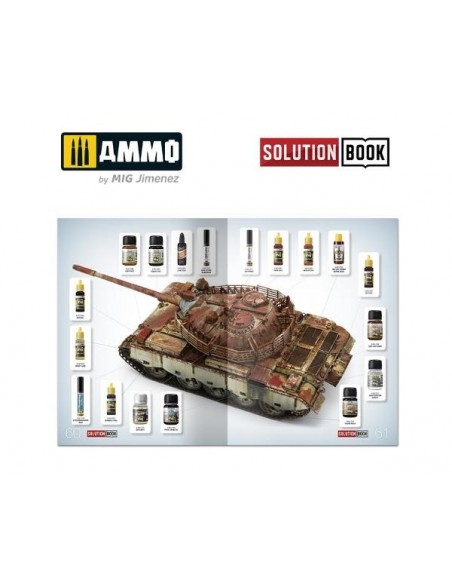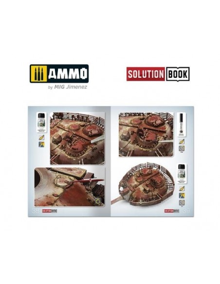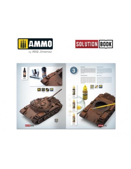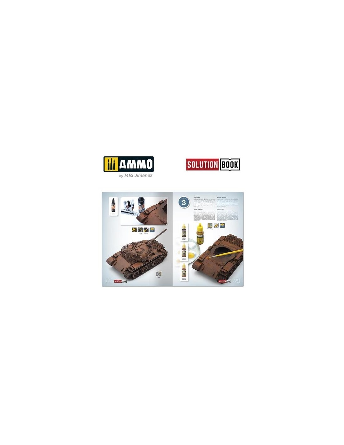 La preziosa risorsa How to Paint Realistic Rust Solution Book è una guida completa di 64 pagine con tutorial passo passo in quattro lingue (inglese, spagnolo, francese e tedesco) che spiegano come dipingere e alterare qualsiasi veicolo arrugginito, inclusi AFV, camion, auto, navi e soggetti di wargame.