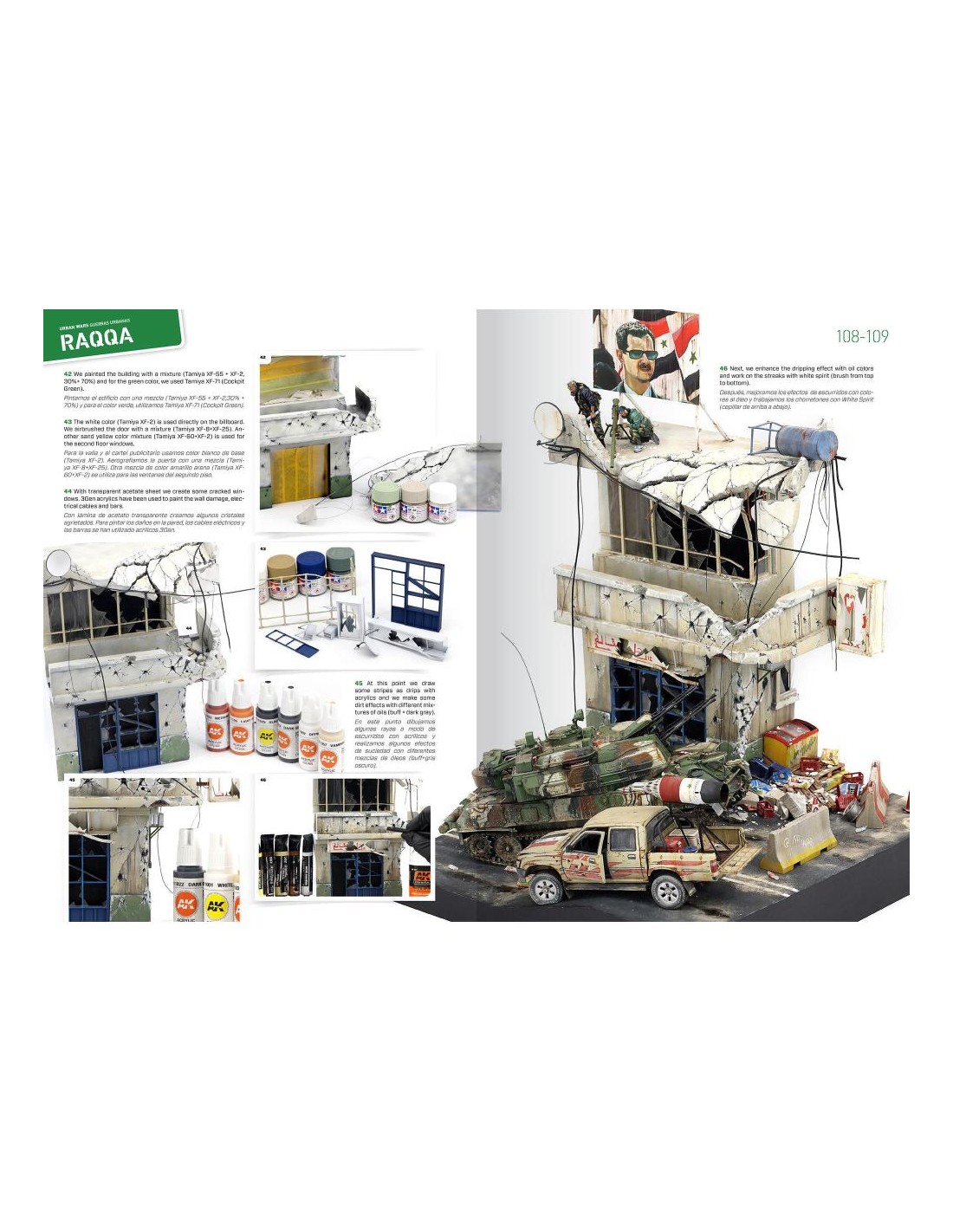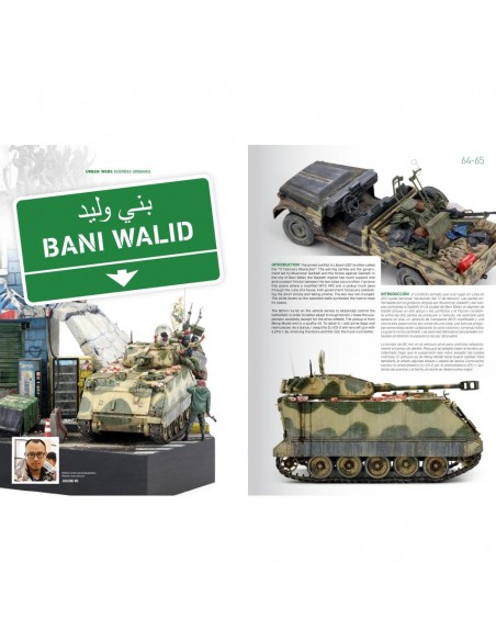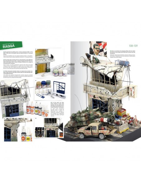 La guerra moderna spesso si riversa nelle città e nelle aree rurali popolate da civili. A volte la popolazione è stata evacuata e altre volte i civili vivono ancora nelle città durante i conflitti. Il combattimento urbano è molto diverso dal combattimento in campo aperto a livello tattico e operativo. Le feroci battaglie urbane ad Aleppo e Mosul, Hue (1968), Algeri (1956-1957), Beirut (1975-1990), Sarajevo (1992-1996), Falluja (2004), Siria, Donbass, ecc. hanno un effetto comune: suppongono una distruzione sistematica delle città e mostrano un ambiente che si ripete. Tutte queste guerre urbane hanno così tanti aspetti in comune che spesso è persino difficile identificare a quale conflitto possa appartenere una scena se non guardiamo da vicino i dettagli degli edifici o delle attrezzature, come vedremo in questo libro di spettacolari Diorami in scala 1:35.