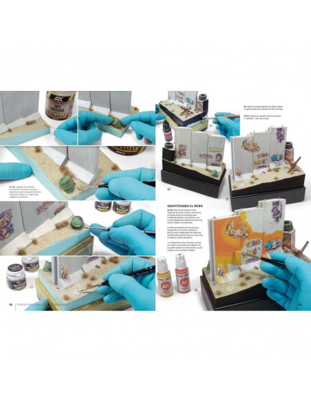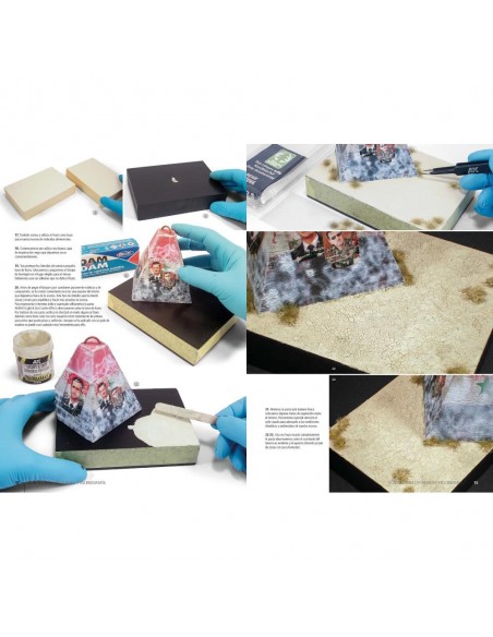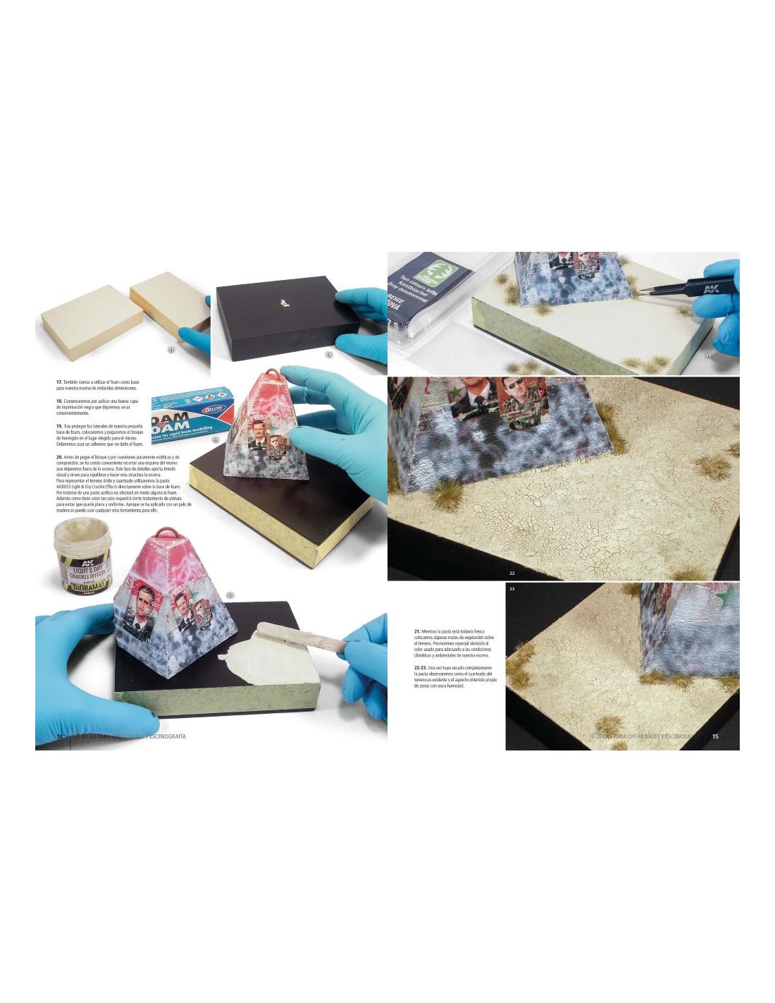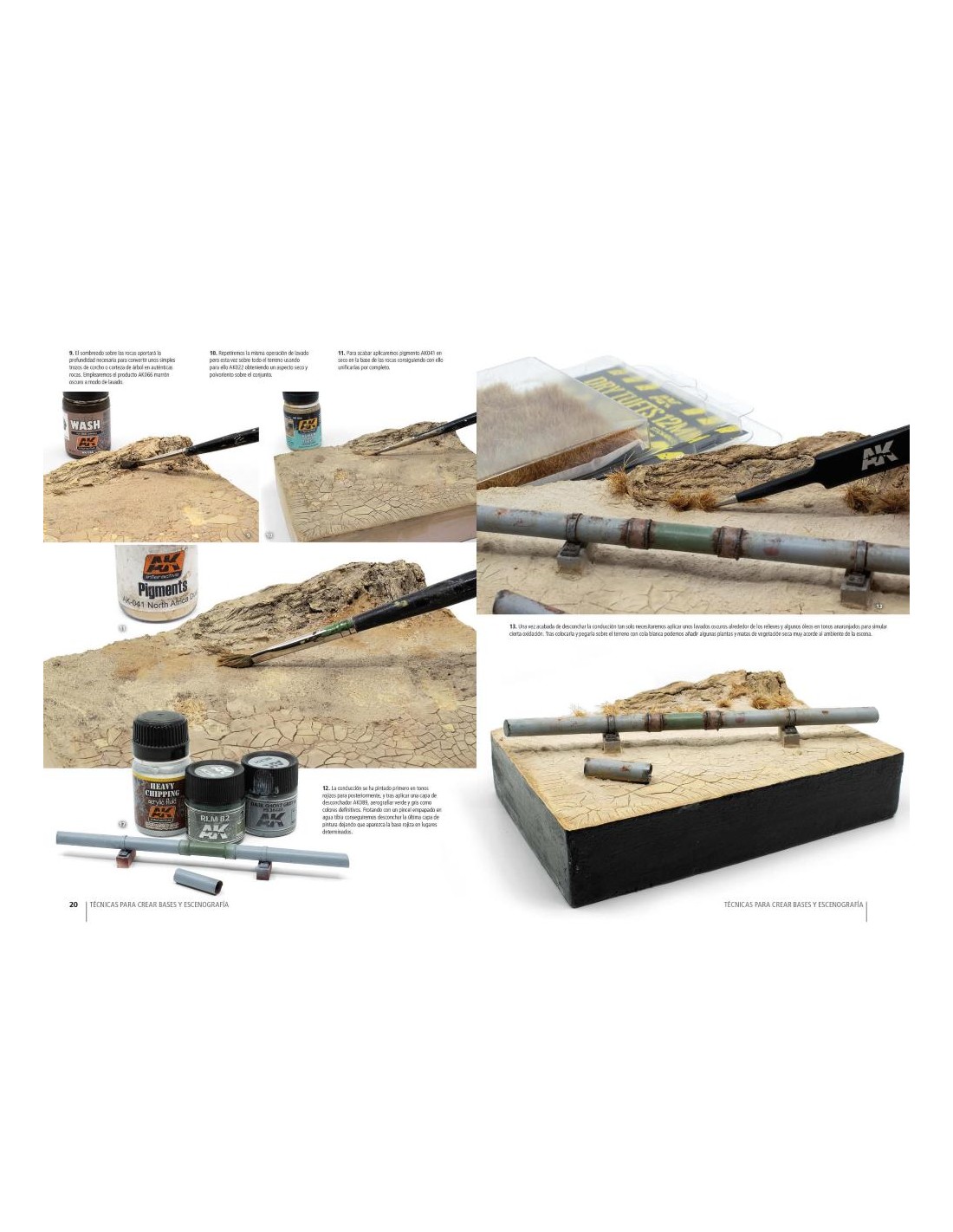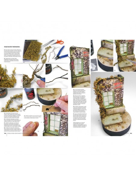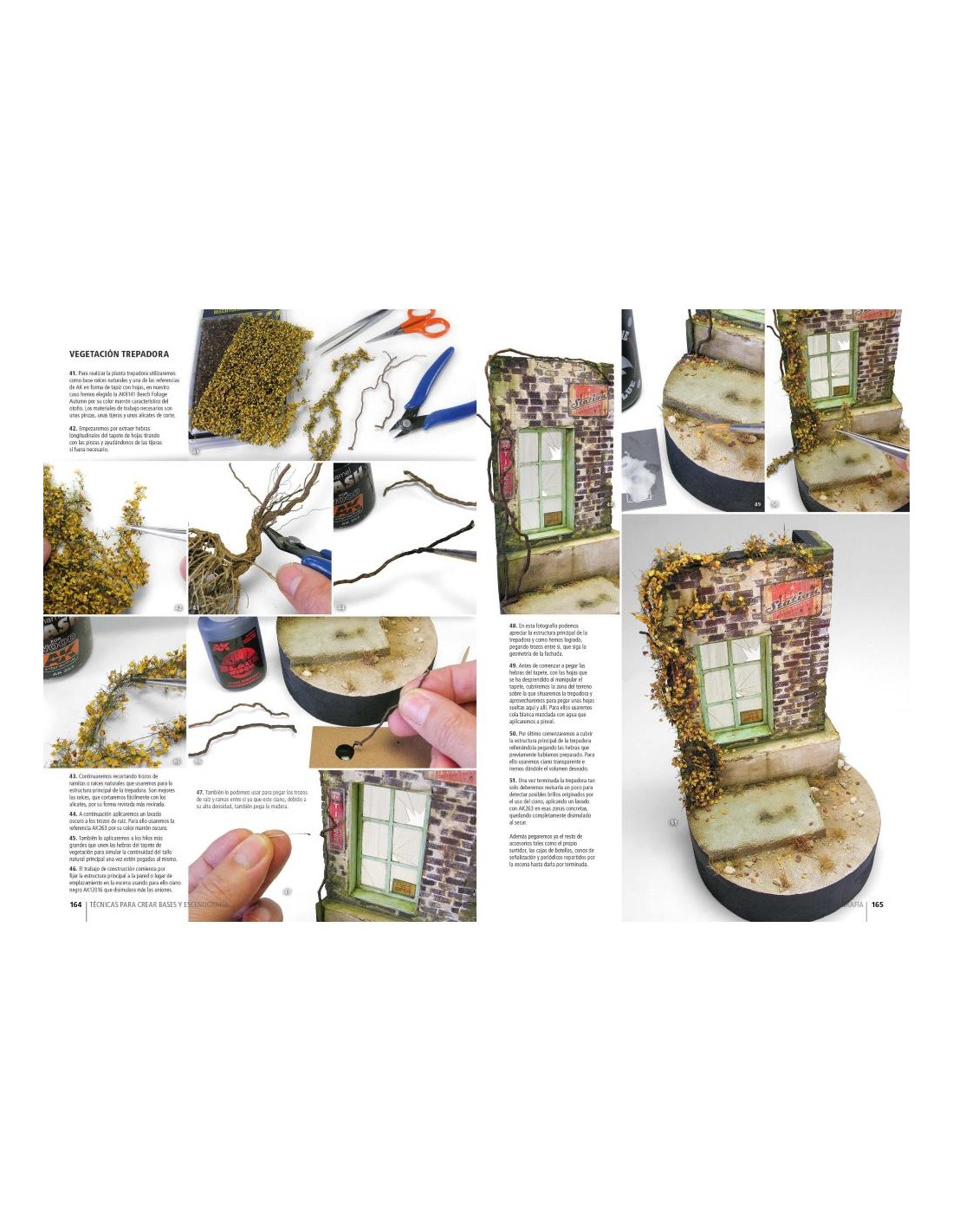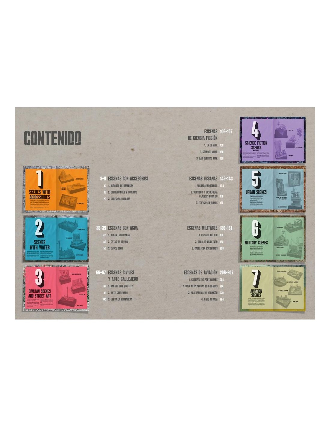 In questo libro non troverai grandi diorami o vignette che raccontano storie complesse con una moltitudine di elementi, figure o veicoli a diversi livelli. Ciò non significa che non sia un grande libro il cui contenuto sia privo di significato, ma piuttosto il contrario. Nel realizzarlo ci siamo avvicinati al suo obiettivo da un altro punto di vista e quello che troverete in questo libro sono tutorial di piccole scene, a volte prive di figure e veicoli, ma con dettagli, tecniche e curiosità con un chiaro scopo didattico, che possono risvegliare il fantasia del lettore e la sua voglia di introdurre quei piccoli dettagli, curati al massimo nelle sue opere. Si tratta di riprodurre tecniche per realizzare piccole scene, che a un certo punto ci sono venute in mente, ma non abbiamo avuto modo di affrontare. Con questo libro cercheremo di aiutarci a compiere quel passo e forse troveremo la chiave del come e del perché introdurre quel piccolo particolare o avere la conoscenza di quel traguardo che ci permette di metterci al lavoro. In ciascuna delle opere che troverete in queste pagine l'autore cura al massimo i dettagli, cercando di integrare ogni elemento a terra con la massima precisione. Forse alcuni degli esempi nel libro risveglieranno il tuo interesse e da queste tecniche e idee come punto di partenza, con diverse figure e veicoli, sarai in grado di realizzare le tue scene e diorami.
