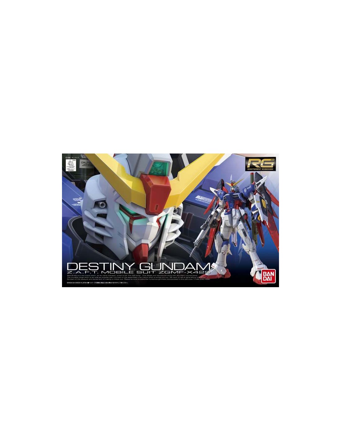 L’undicesima uscita per la serie RG è dedicata al protagonista della serie Gundam Seed Destiny. Il modellino di Destiny Gundam dispone di armi, parti intercambiabili e ottime articolazioni. Necessita di assemblaggio.
