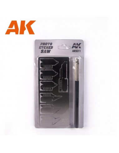 Set di seghetti fini in acciaio inox per tagli molto delicati con la massima precisione. Perfetto per scale molto piccole. Manico antiscivolo. Il set contiene un foglio fotoinciso di sette punte con diverse sequenze di denti per lavori di dettaglio. Le lame sono estremamente affilate e consentono di lavorare in aree dove è necessaria una linea di taglio molto sottile. Fai attenzione e tienili lontano dalla portata dei bambini.