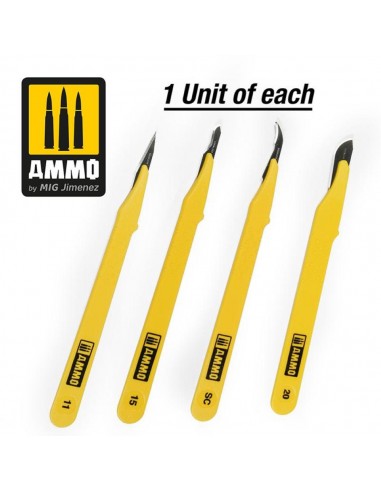 Standard Blade Set 4 pz (1 Standard Blade Straight+1 Blade Curved+1Blade Ripper+1Blade Curved Large) 4 scalpels in plastic bag