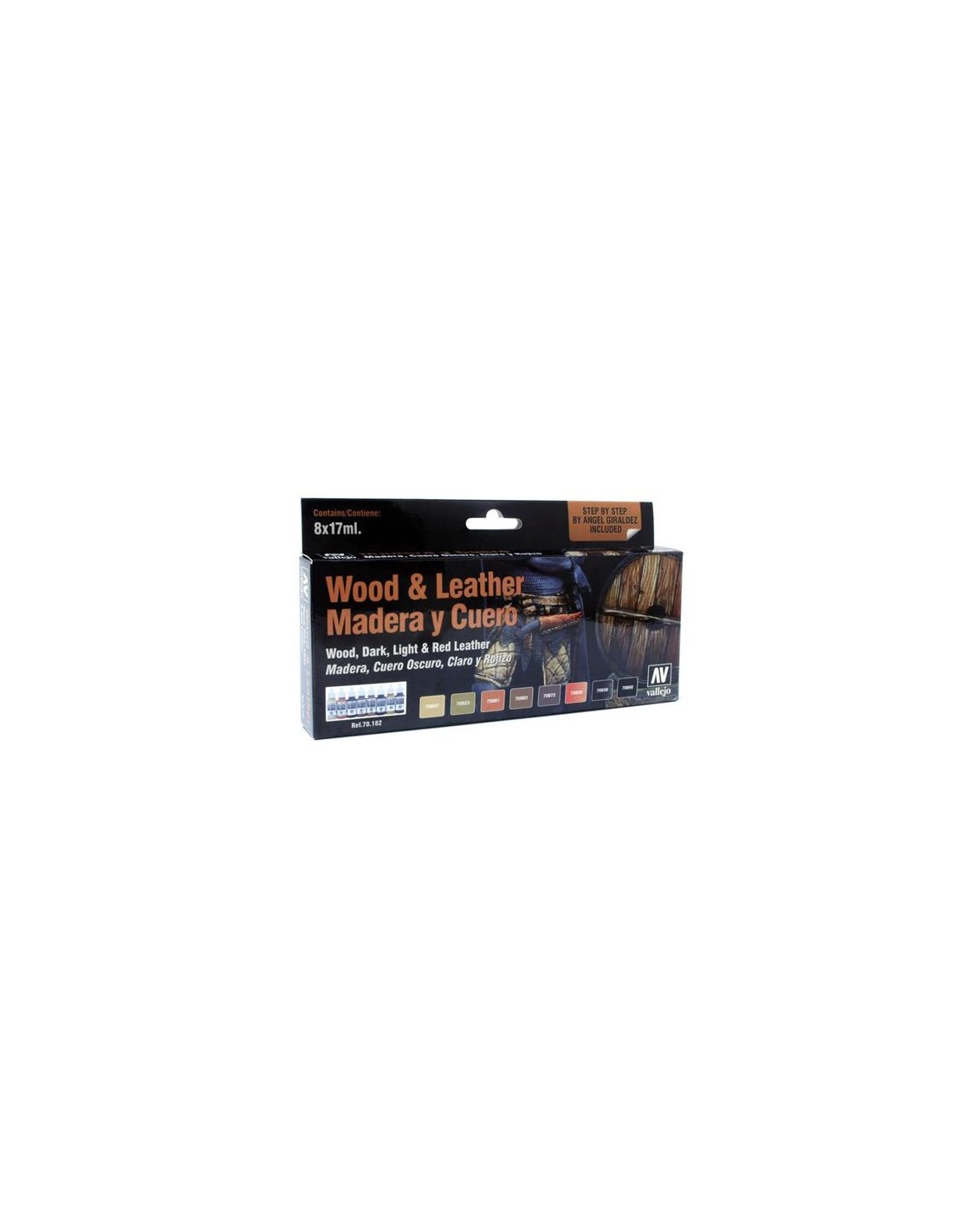 Selection of 8 Model Color in 17 ml. bottles for painting wood, dark, light and red leather. Includes step by step photographs and painting instructions by Angel Giraldez.